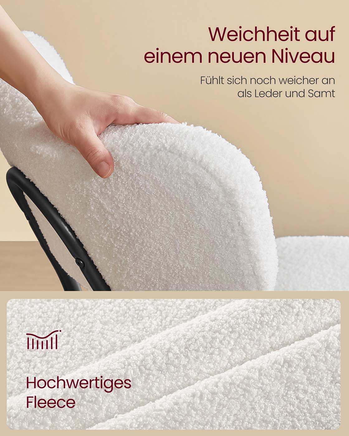 Eetkamerstoel set van 2 met fleece oppervlak crèmewit 5 cm