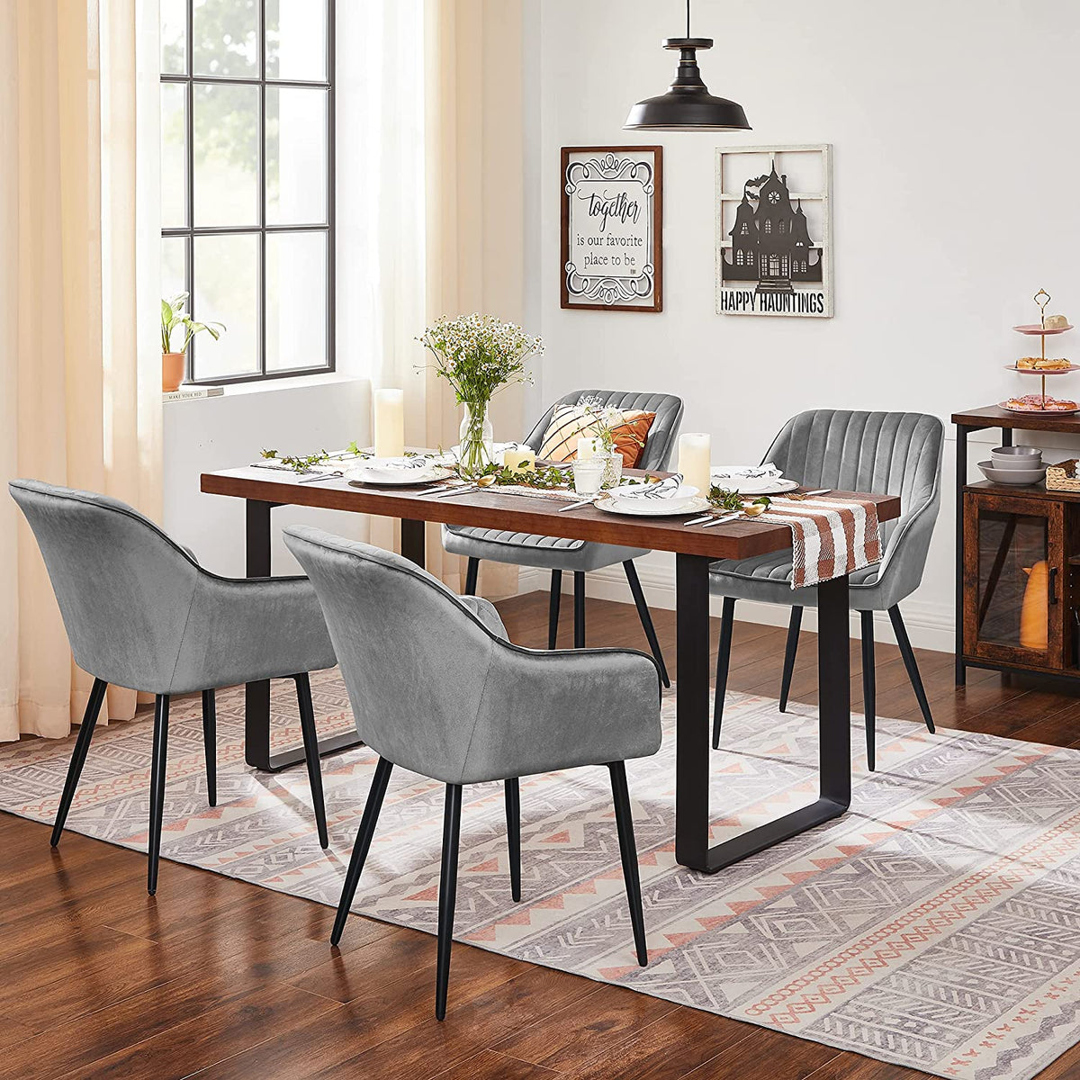Eetkamerstoelen set van 6 met fluwelen hoes lichtgrijs 49 cm