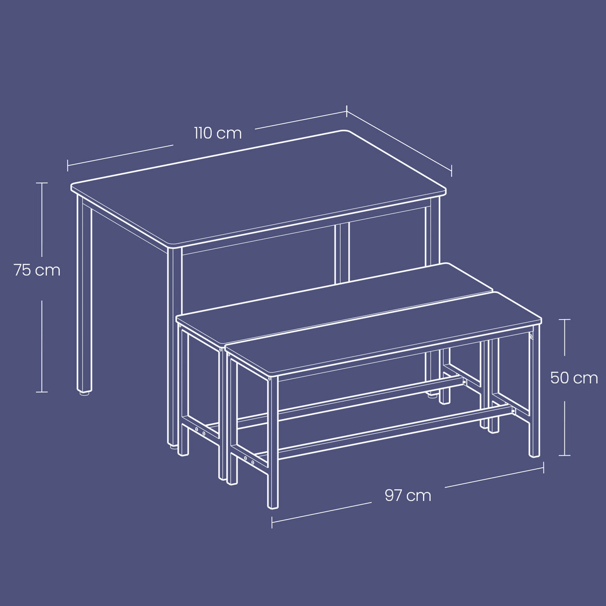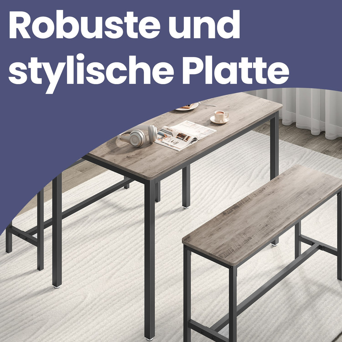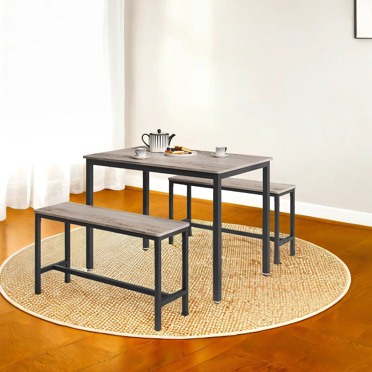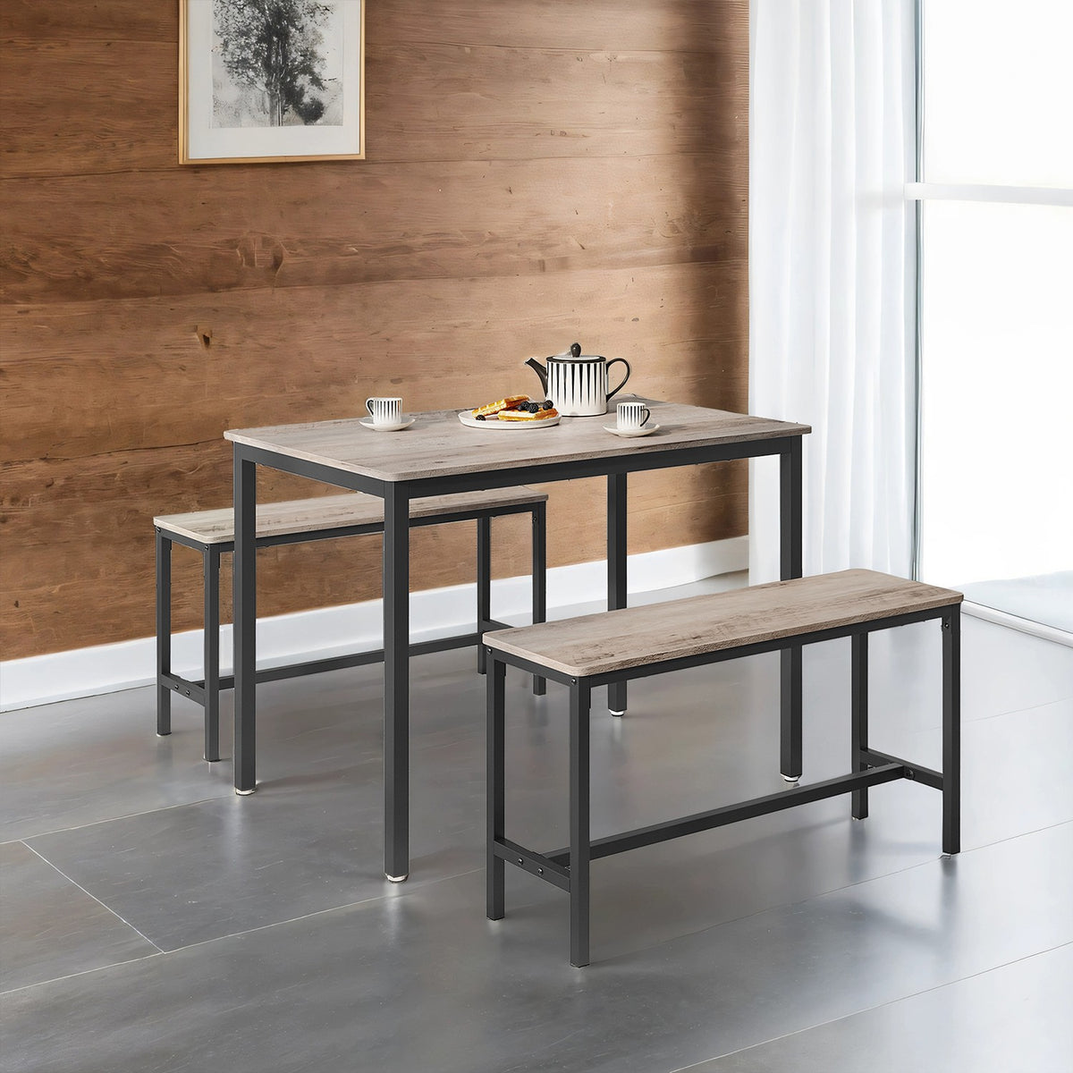 Eettafel met 2 banken, set van 3, greige gemêleerd inktzwart 70 x 110 x 75 cm