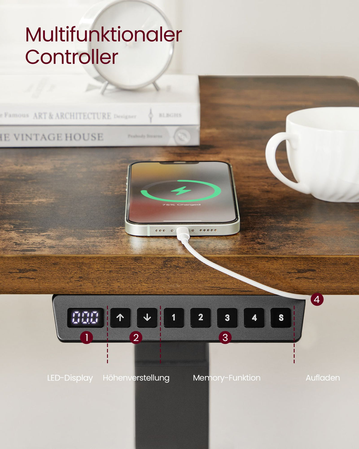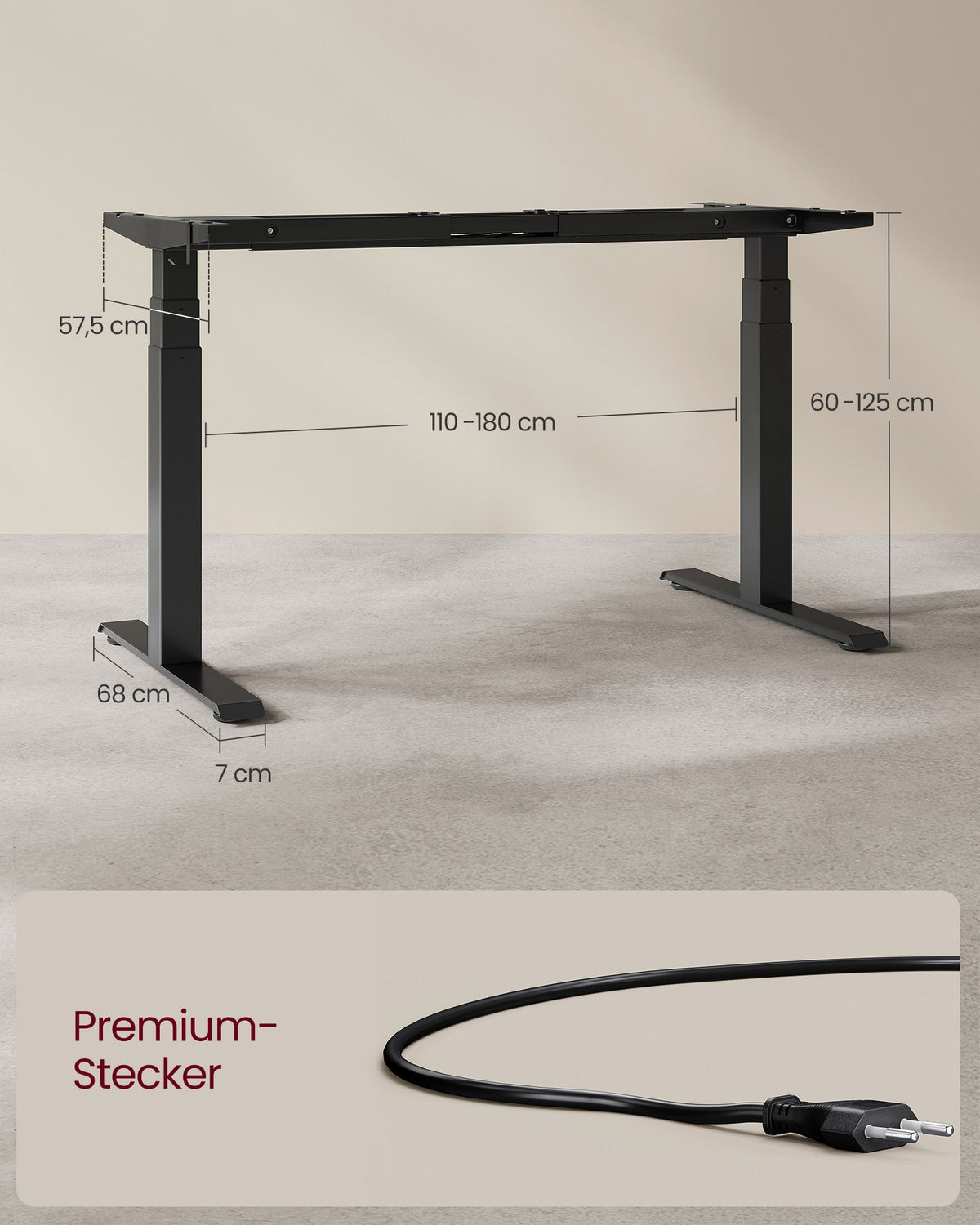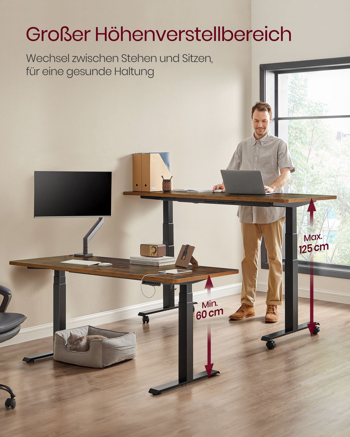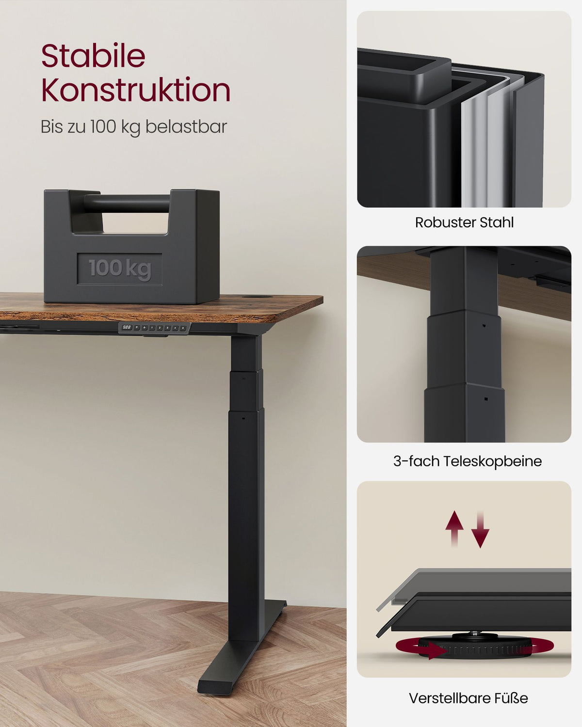 Elektrisch in hoogte verstelbaar bureau met geheugenfunctie, zwart 125 cm