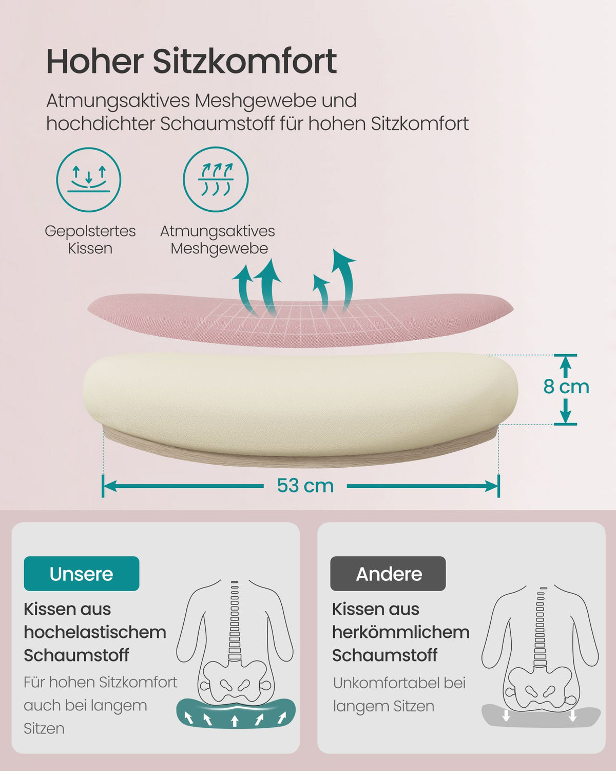 Ergonomische bureaustoel met schommelfunctie, pastelroze 53 cm