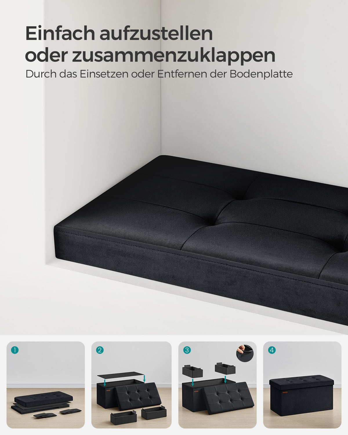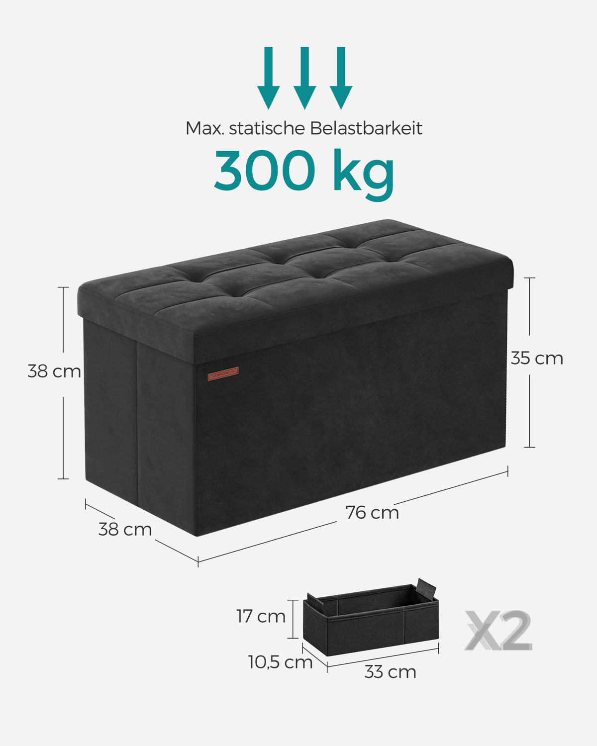 Fluwelen opbergbank voor in de hal, inktzwart 38 x 76 x 38 cm