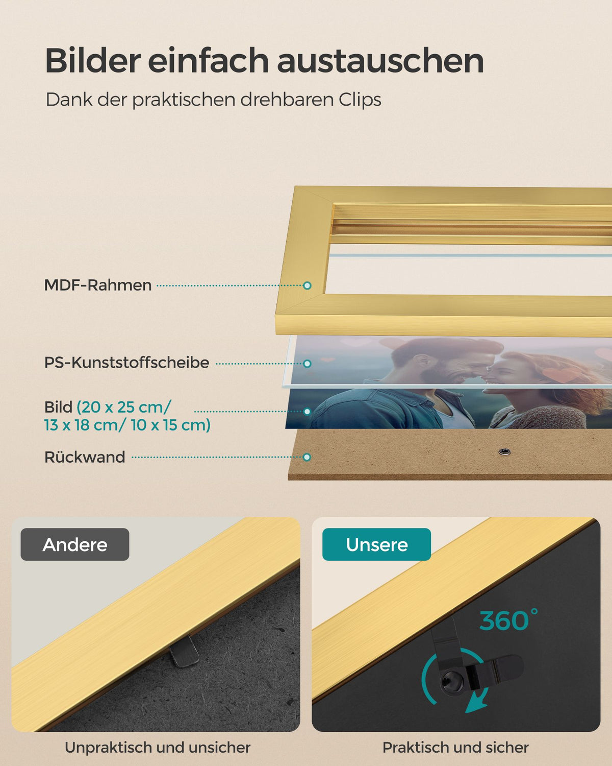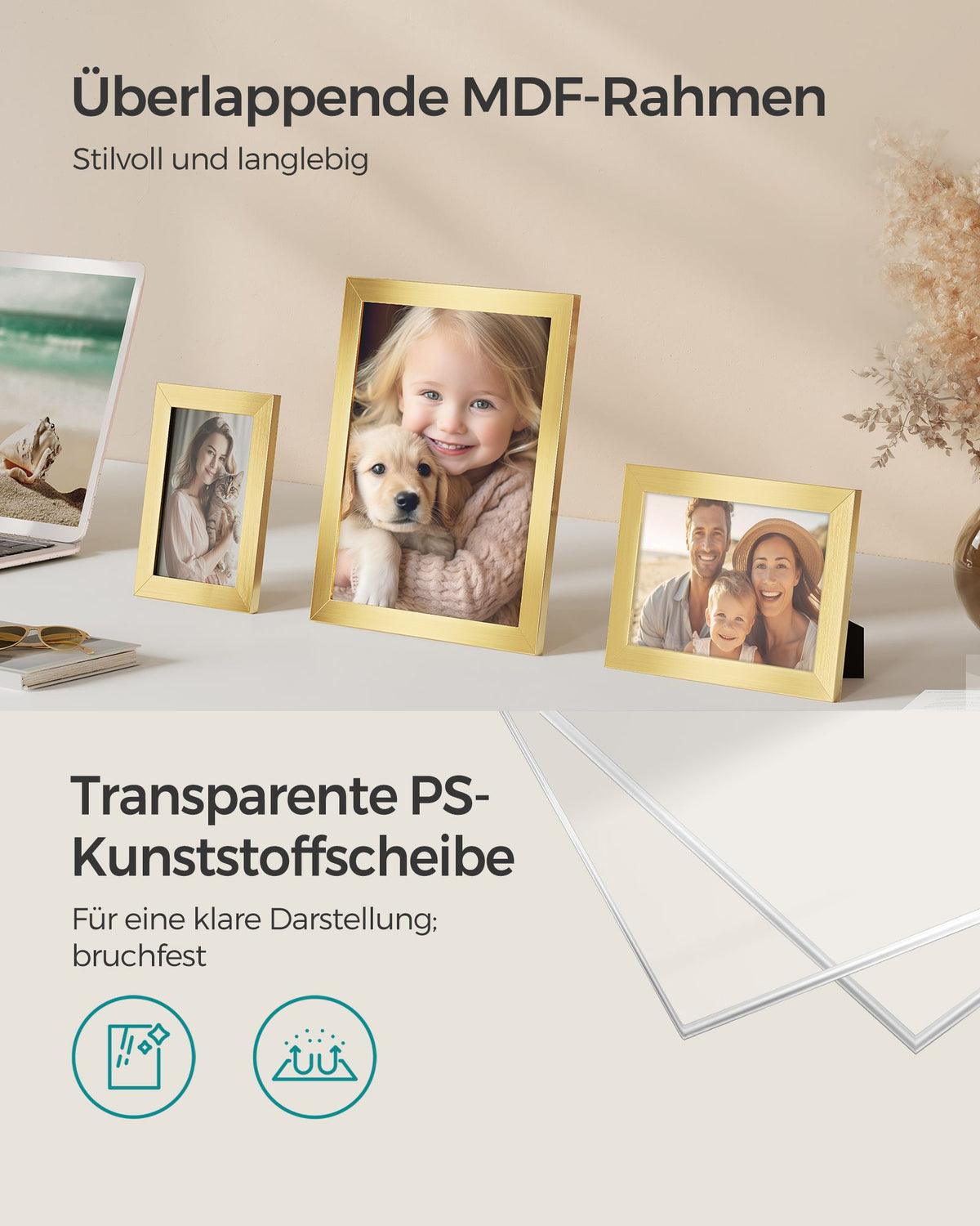 Fotolijstenset van 10 met kunststof schijf van MDF 20 x 25 cm