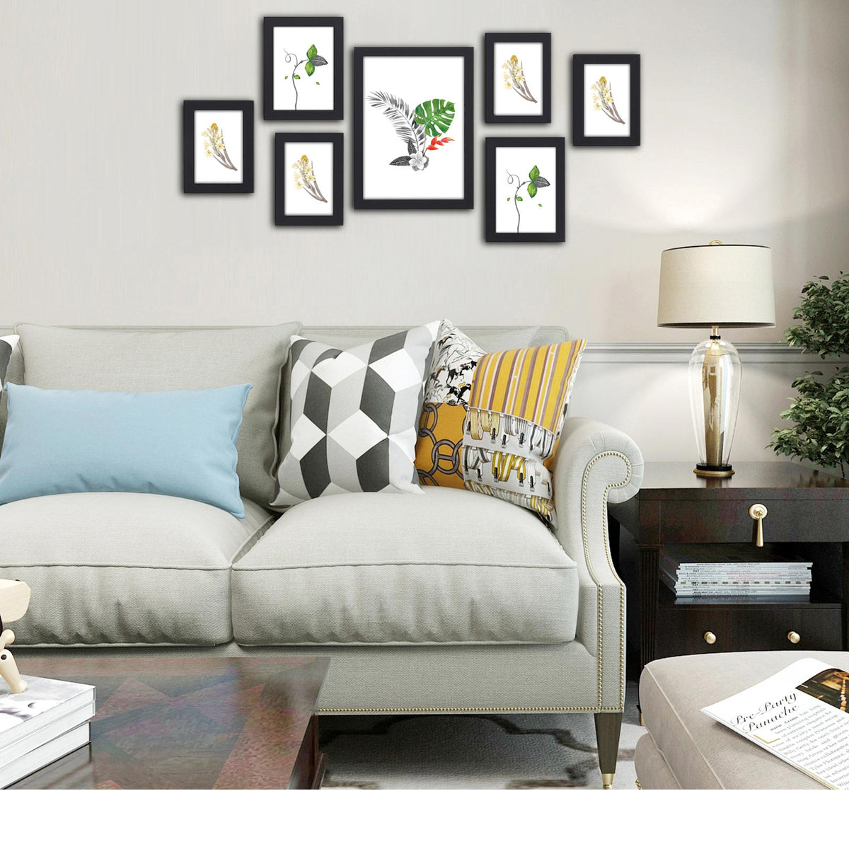 Fotolijstenset voor 7 foto's zwart 7 cm