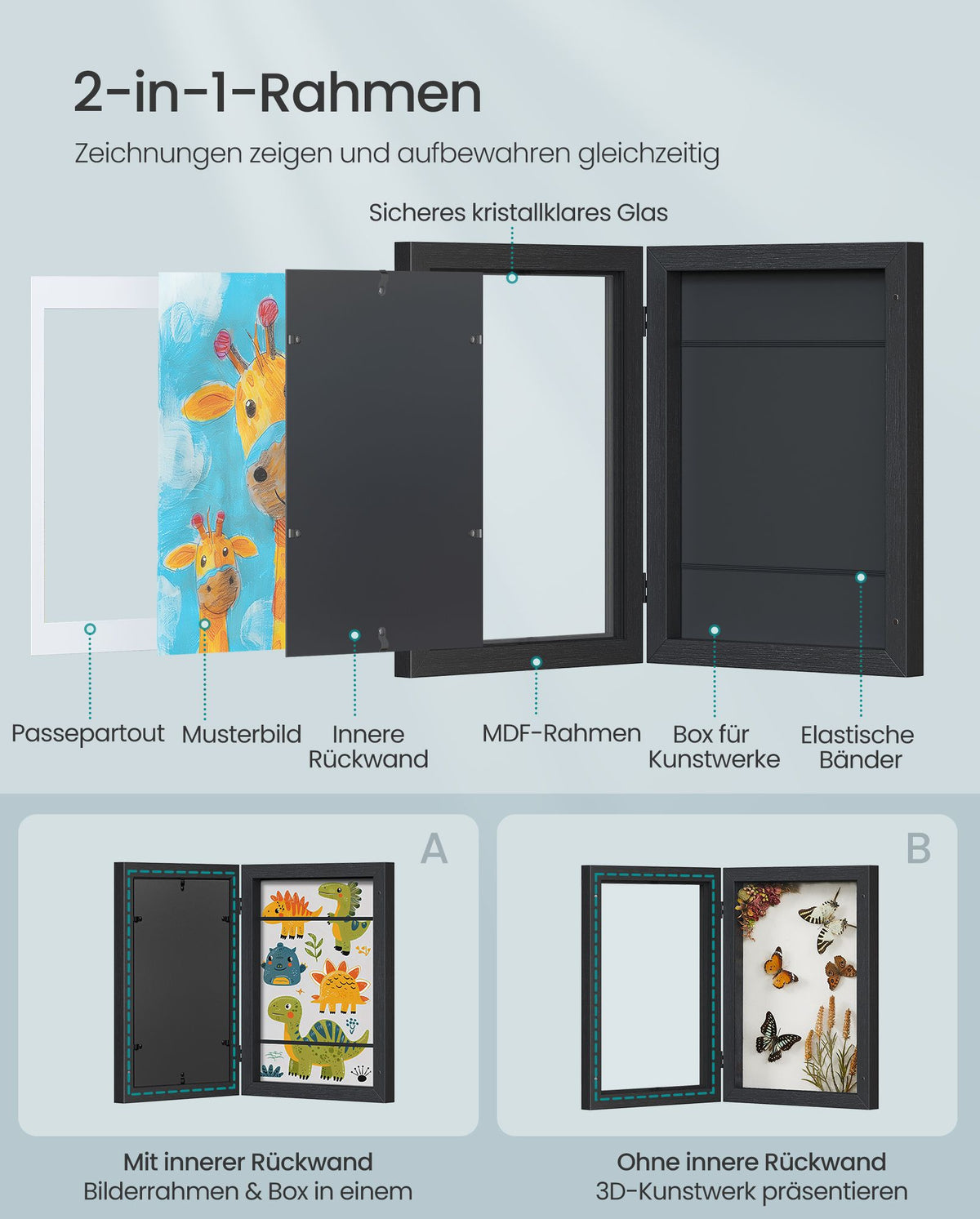 Fotolijstset van 2 met traceless wandhaken 34,5 x 25,5 cm aszwart