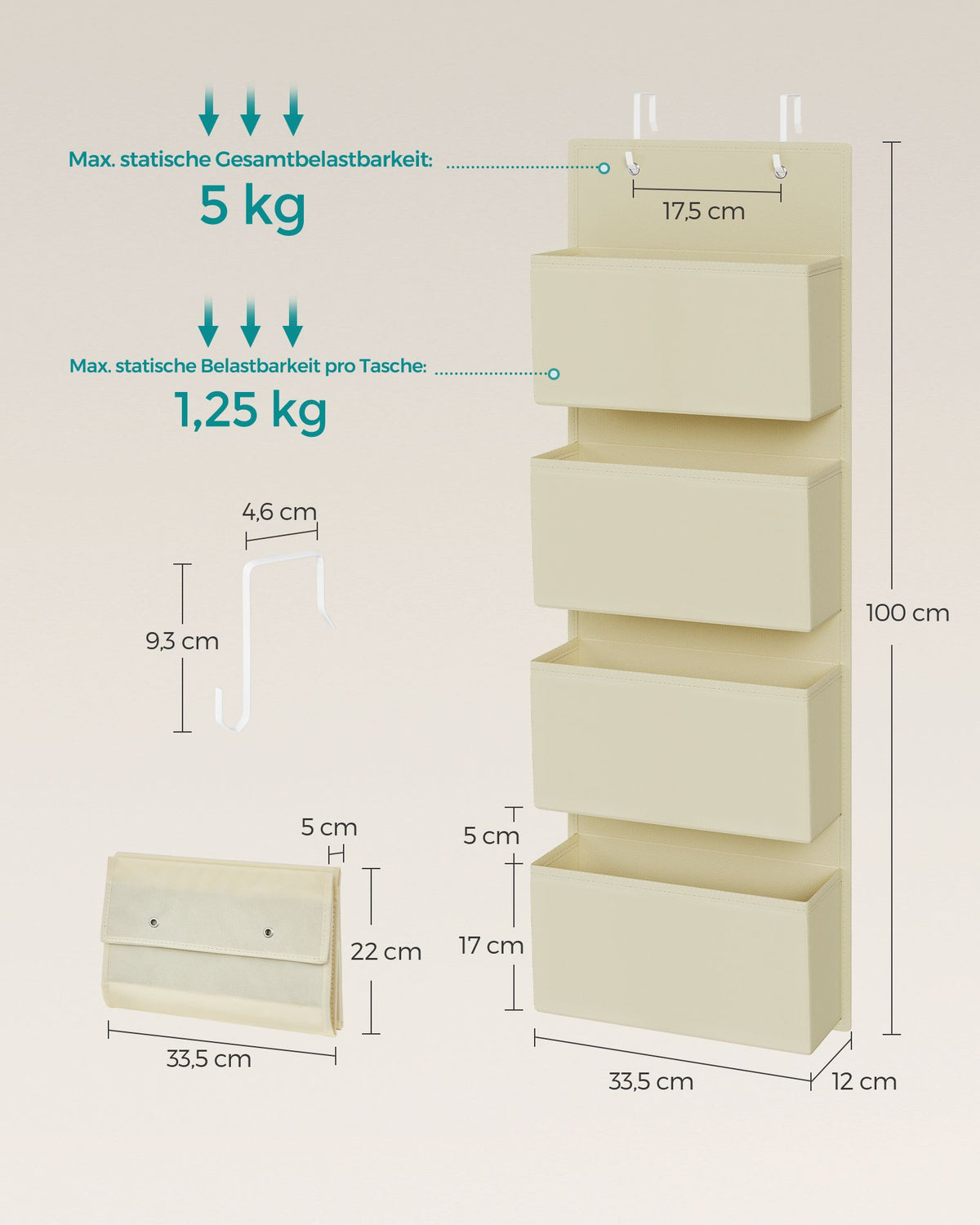 Garderobekast organizer met 4 vakken beige 5 x 12 x 100 cm