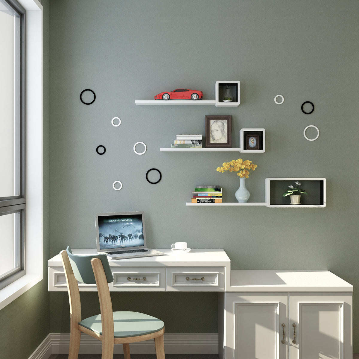 Geometrische wandplanken set van 3 wit 42,5 x 21,5 x 10 cm