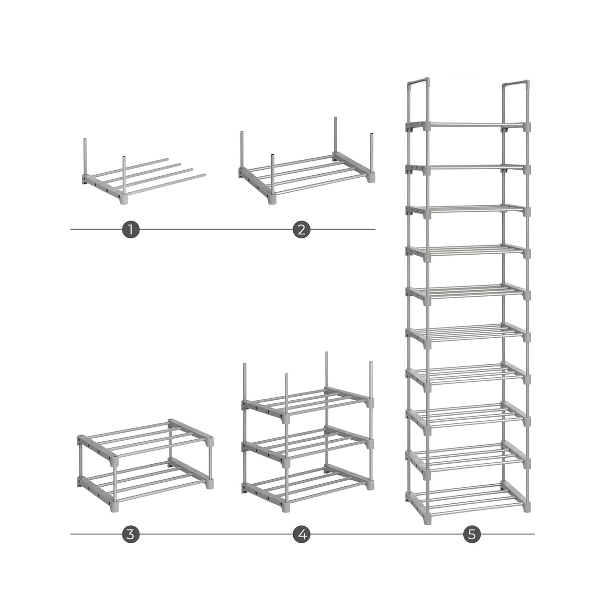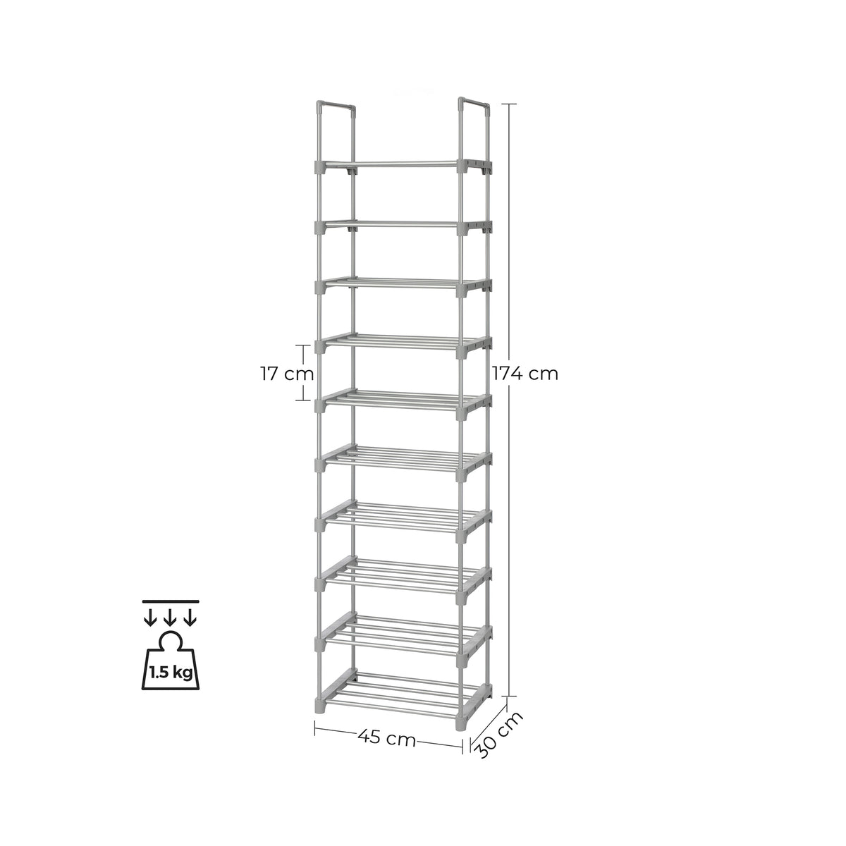 Groot schoenenrek met 10 niveaus grijs 45 x 30 x 174 cm