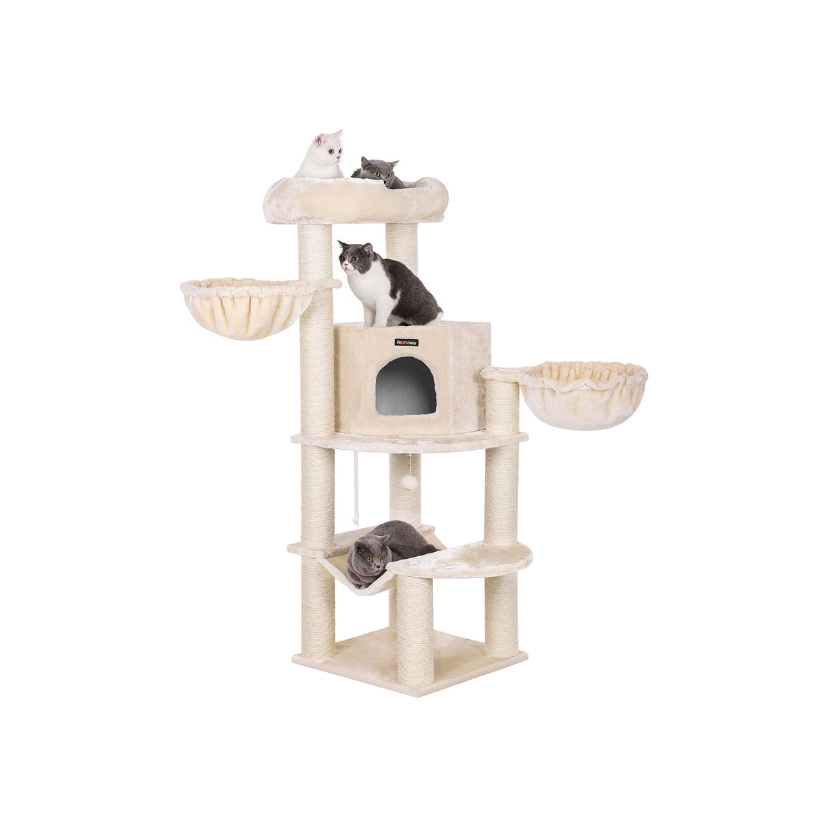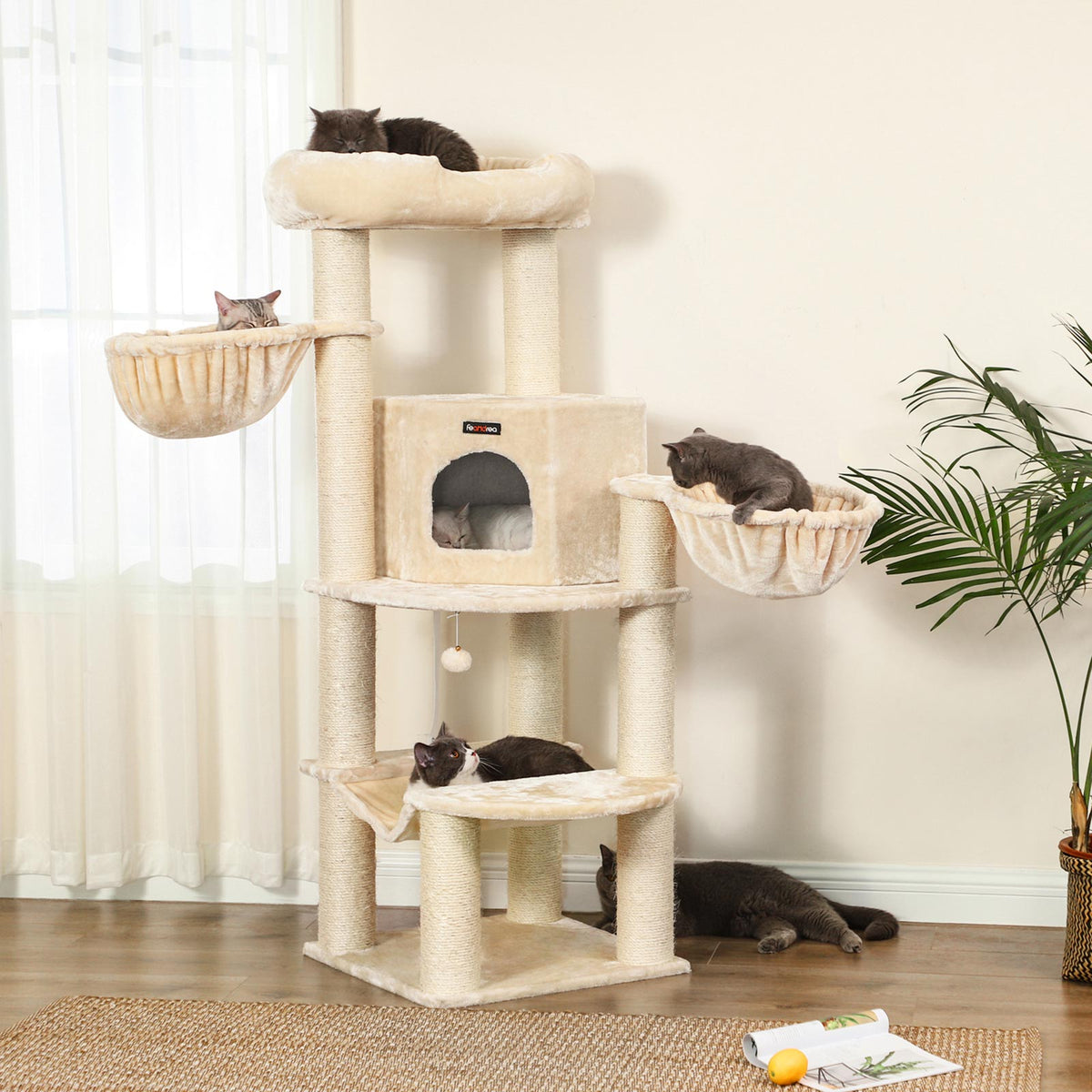 Grote krabpaal XL kattenboom beige 55 x 55 x 153 cm