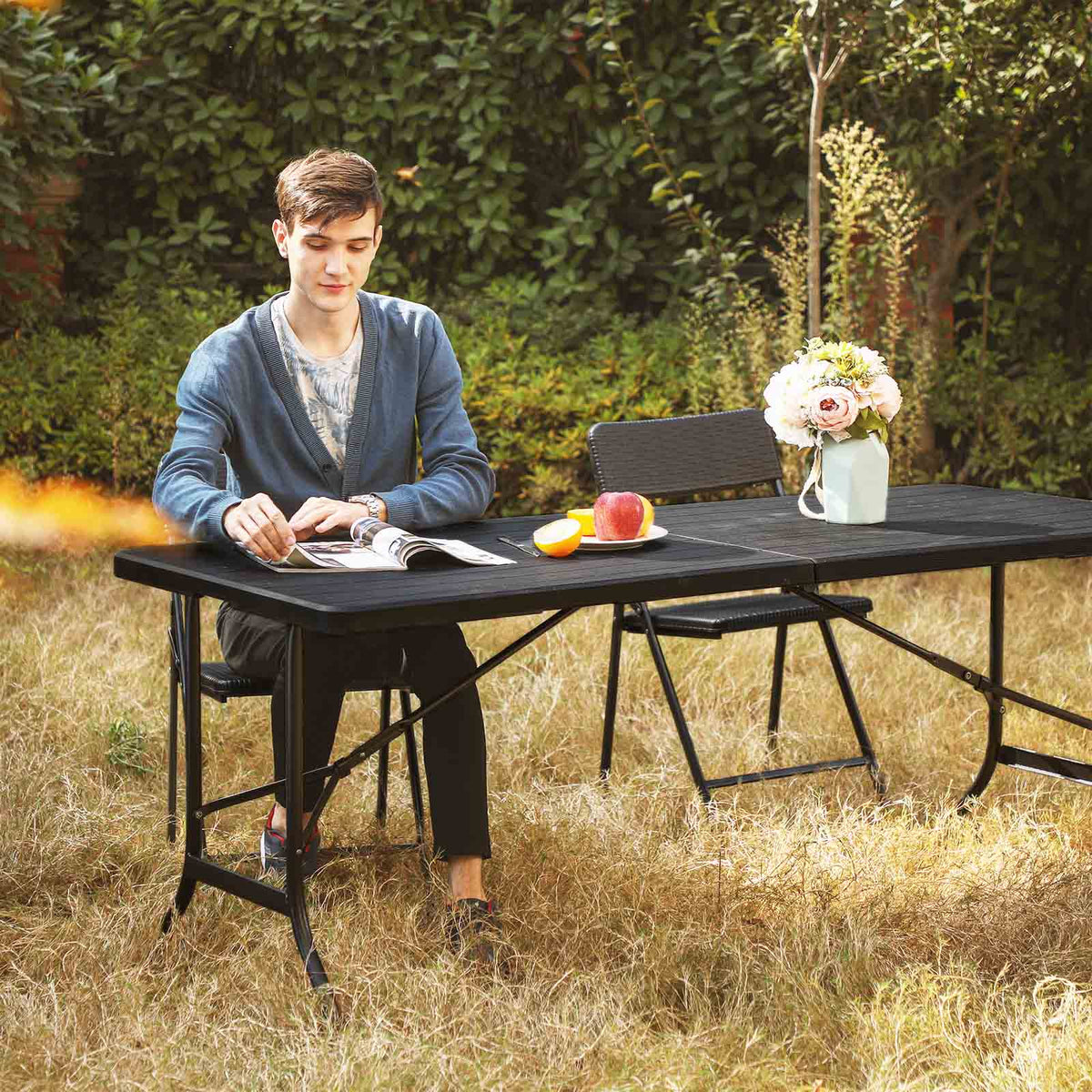 Grote tuintafel in zwart hout 180 x 75 x 74 cm