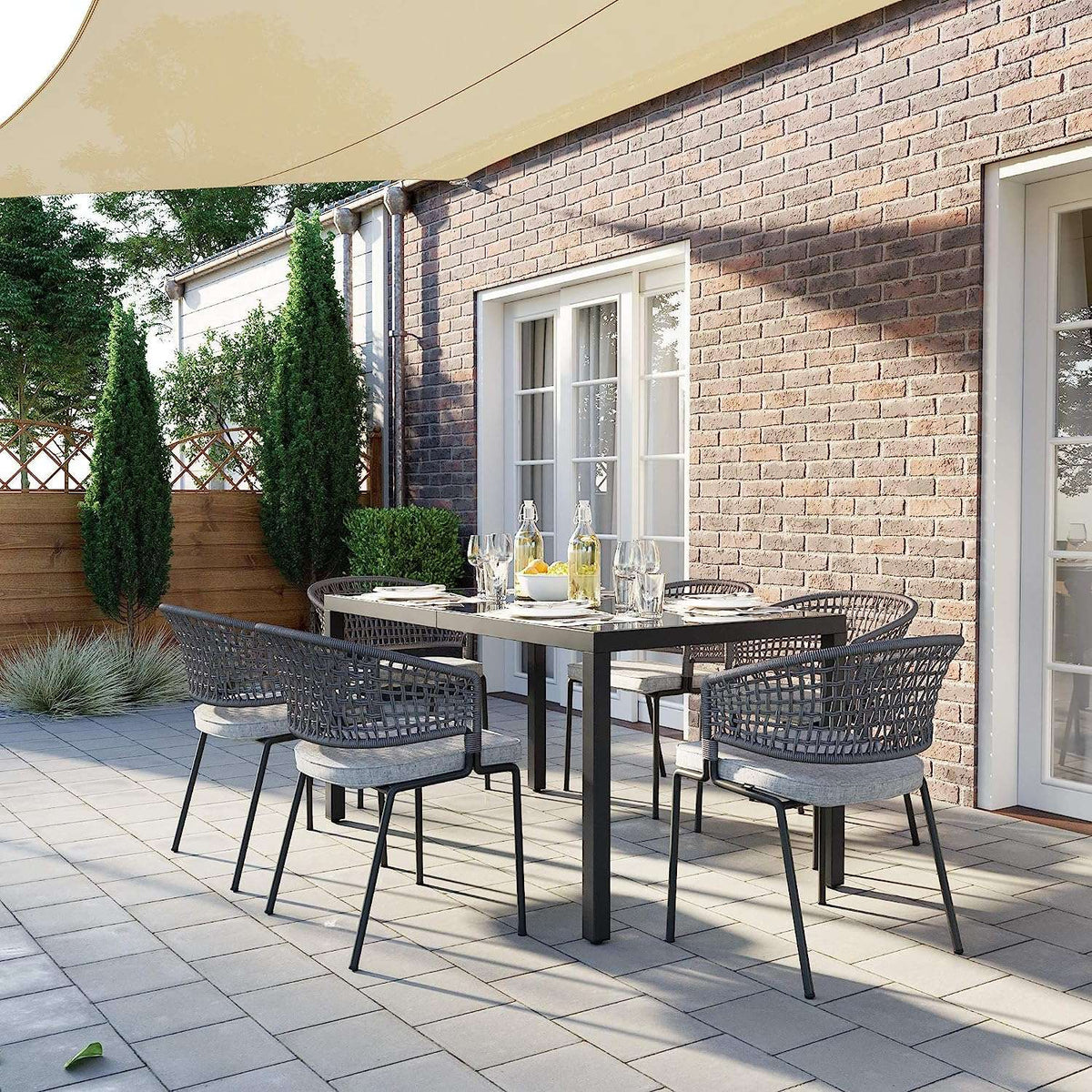 Grote tuintafel met zwart glas 150 x 90 x 73 cm