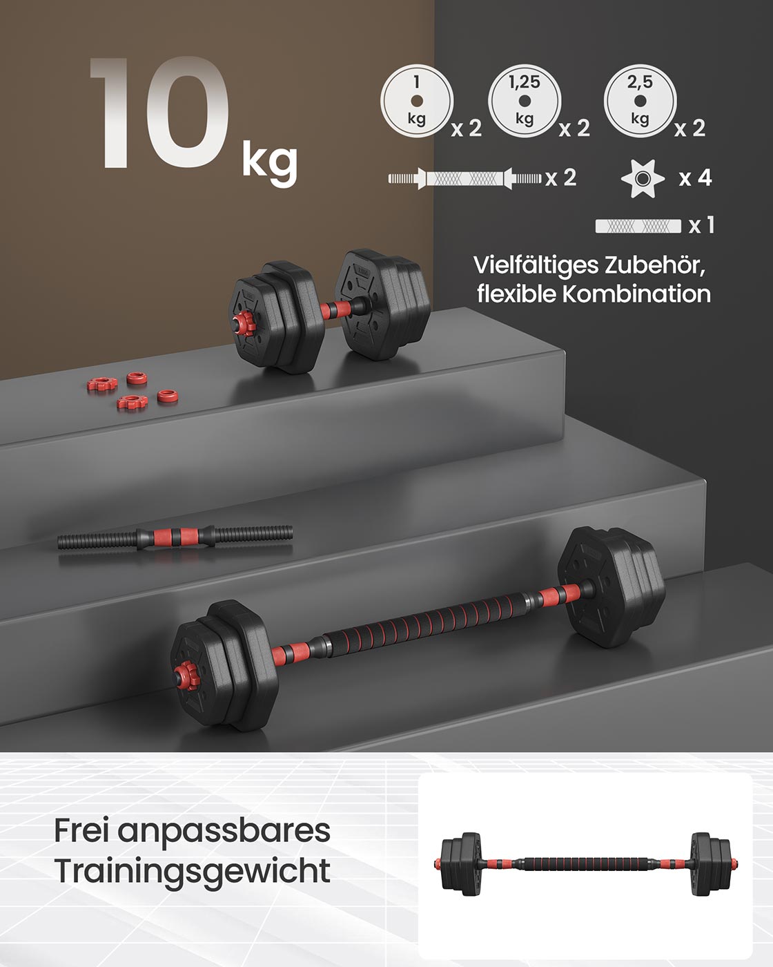 Halterset met verbindingsstang 10 kg voor thuis inkt zwart 6 cm