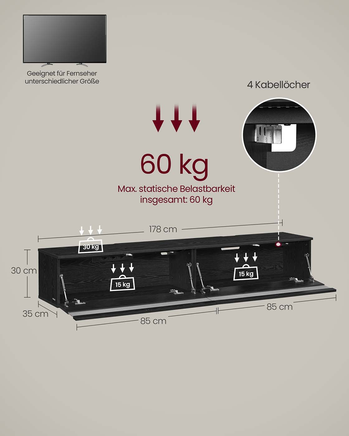 Hangend tv-kastje 178 x 35 x 30 cm ebbenhout zwart