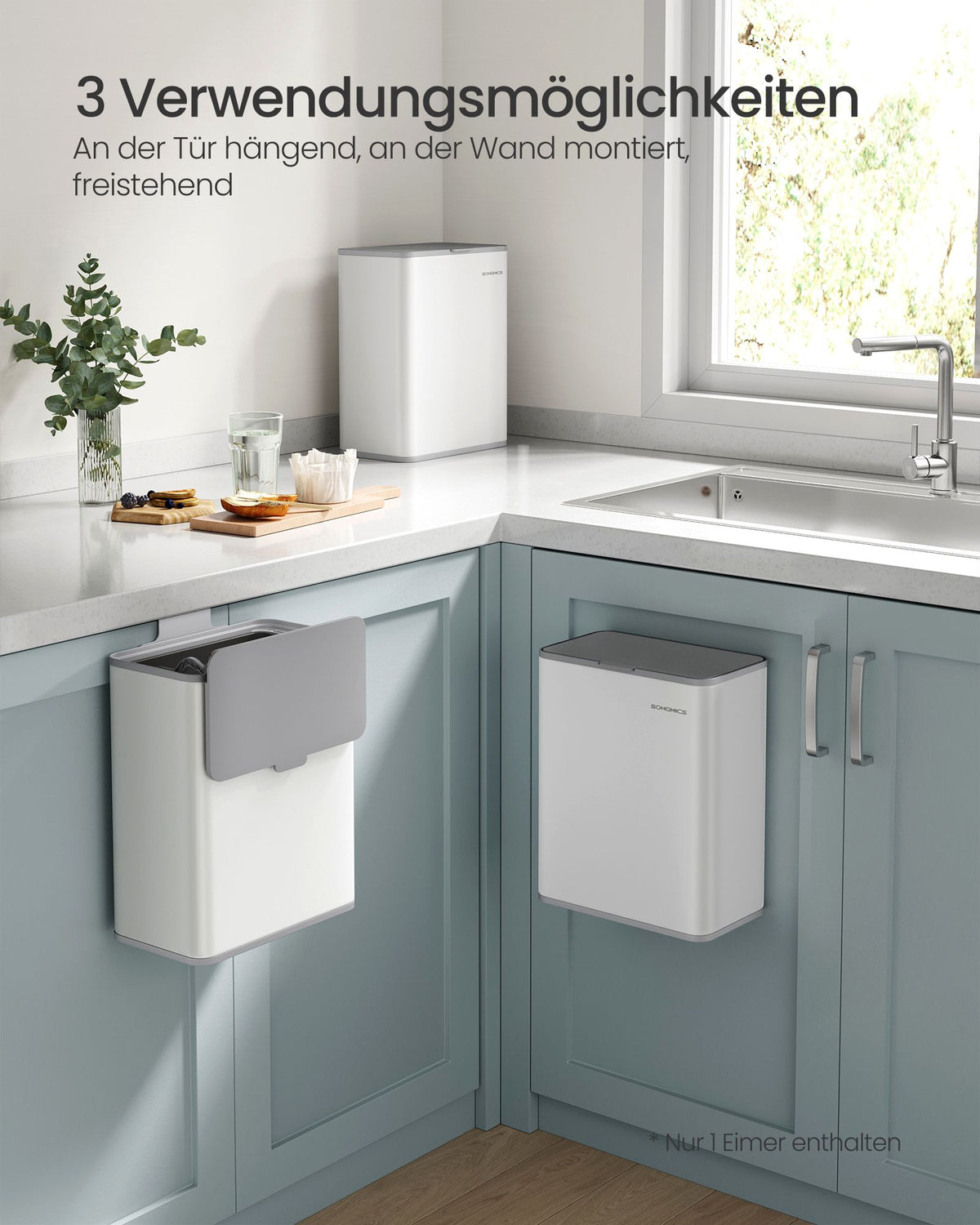 Hangende prullenbak 8 L met deksel wolkwit 2 x 32 cm