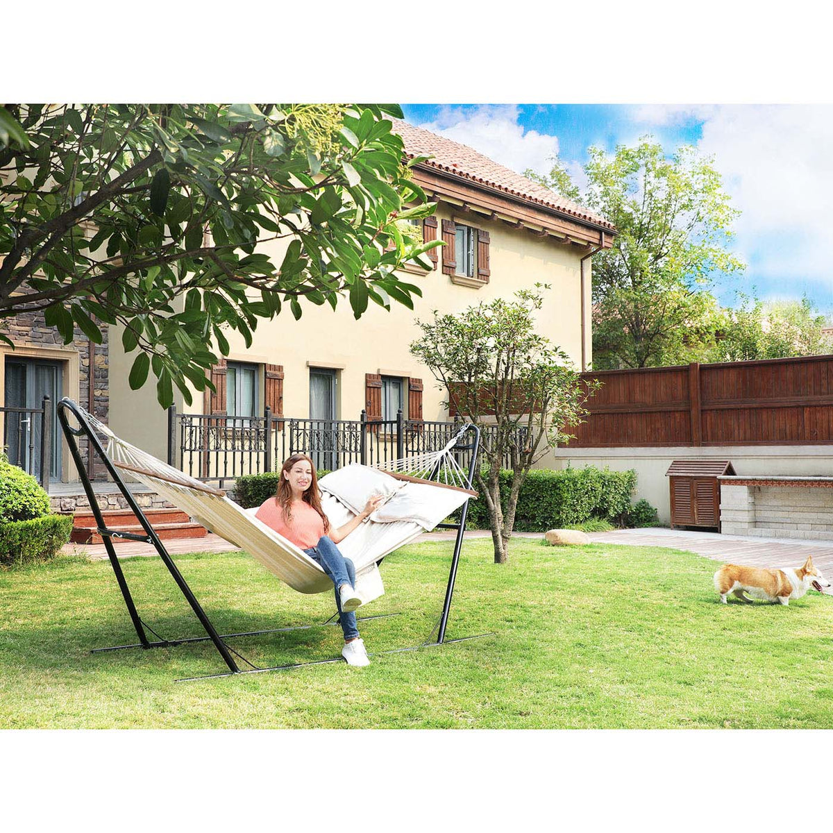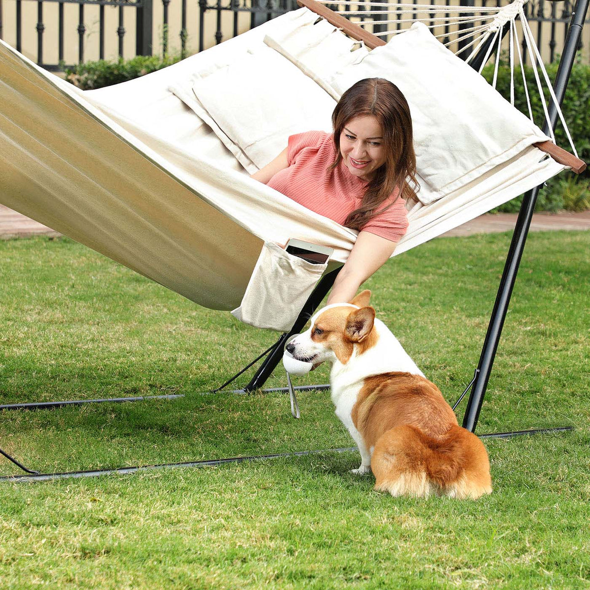 Hangmat met 2 kussens 210 x 150 cm - B34GDC22M