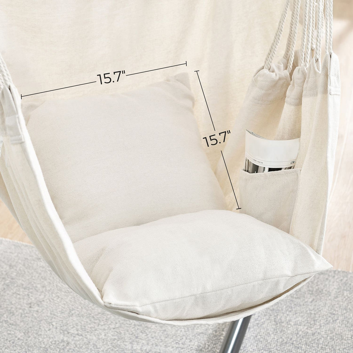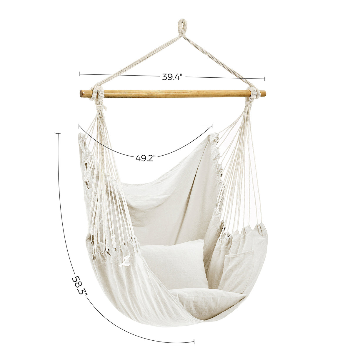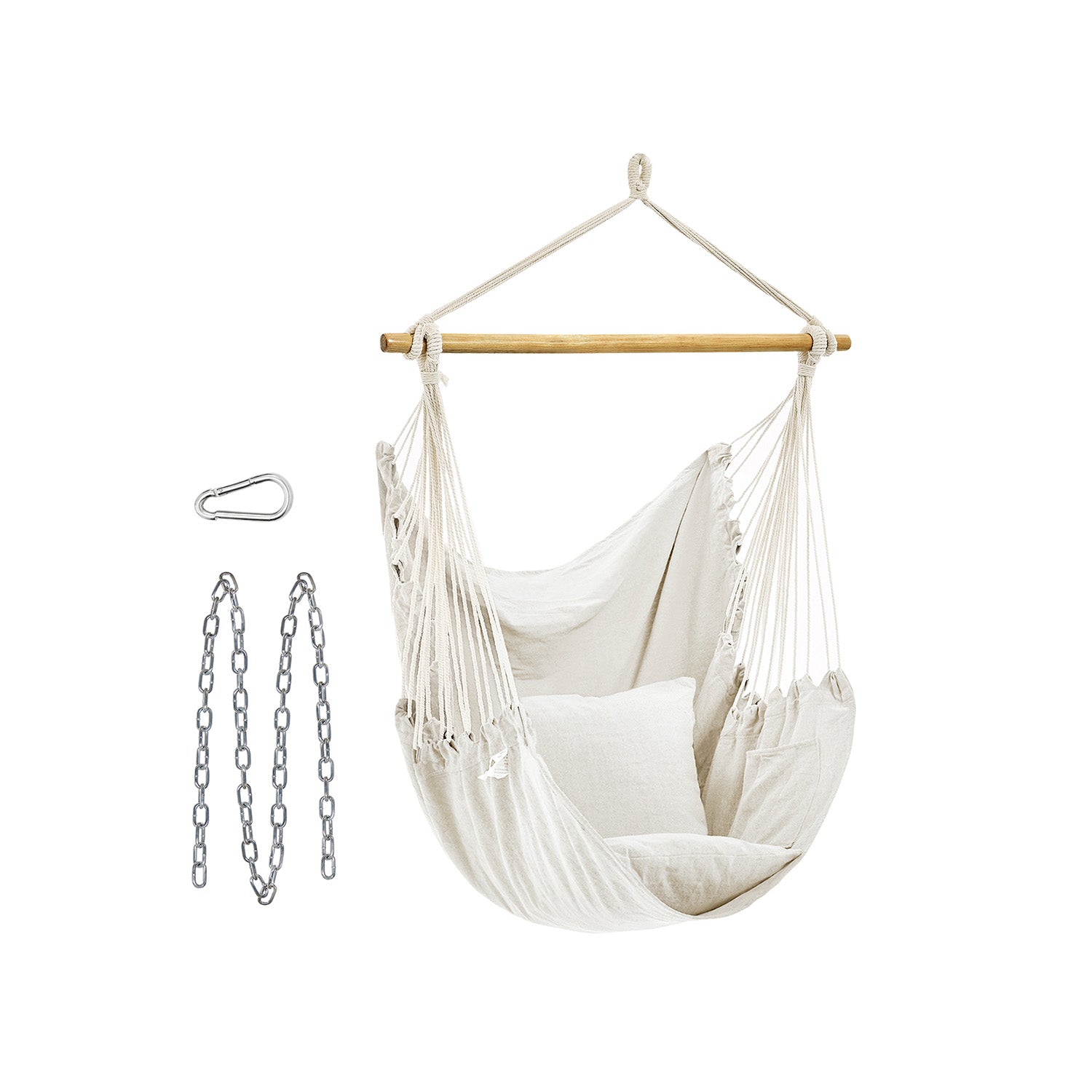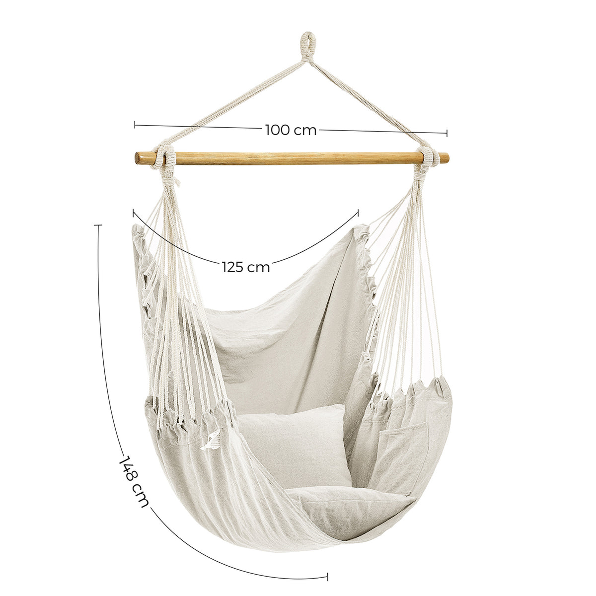 Hangstoel met 2 kussens en metalen ketting beige 148 x 125 cm