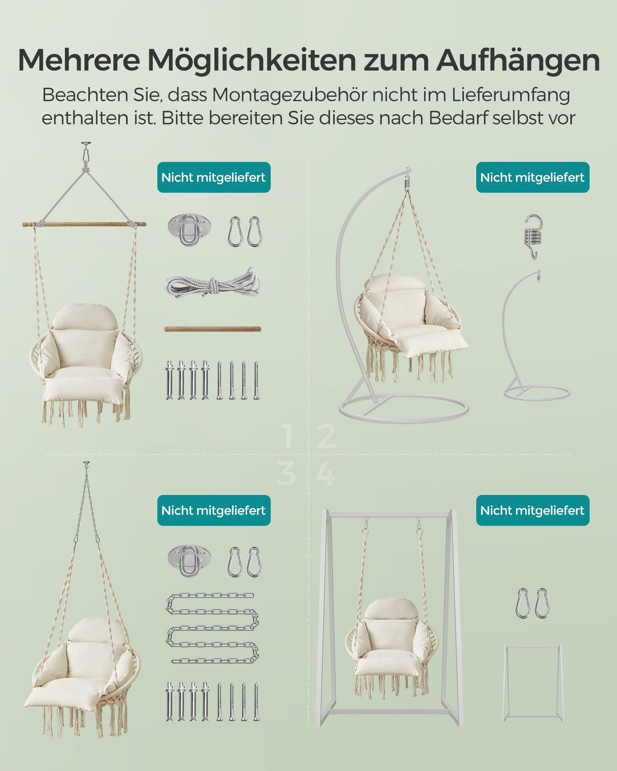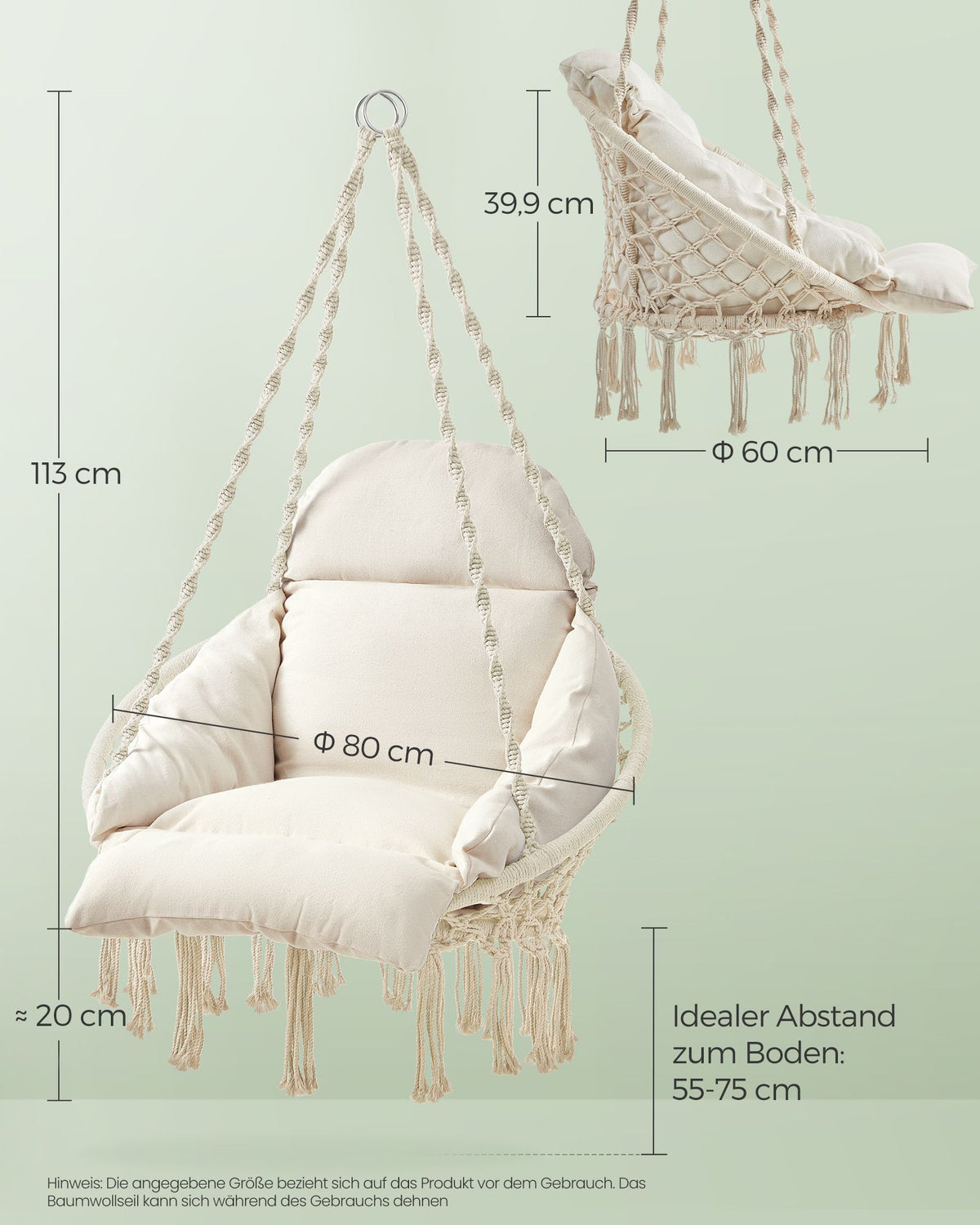 Hangstoel met dik kussen beige 133 cm