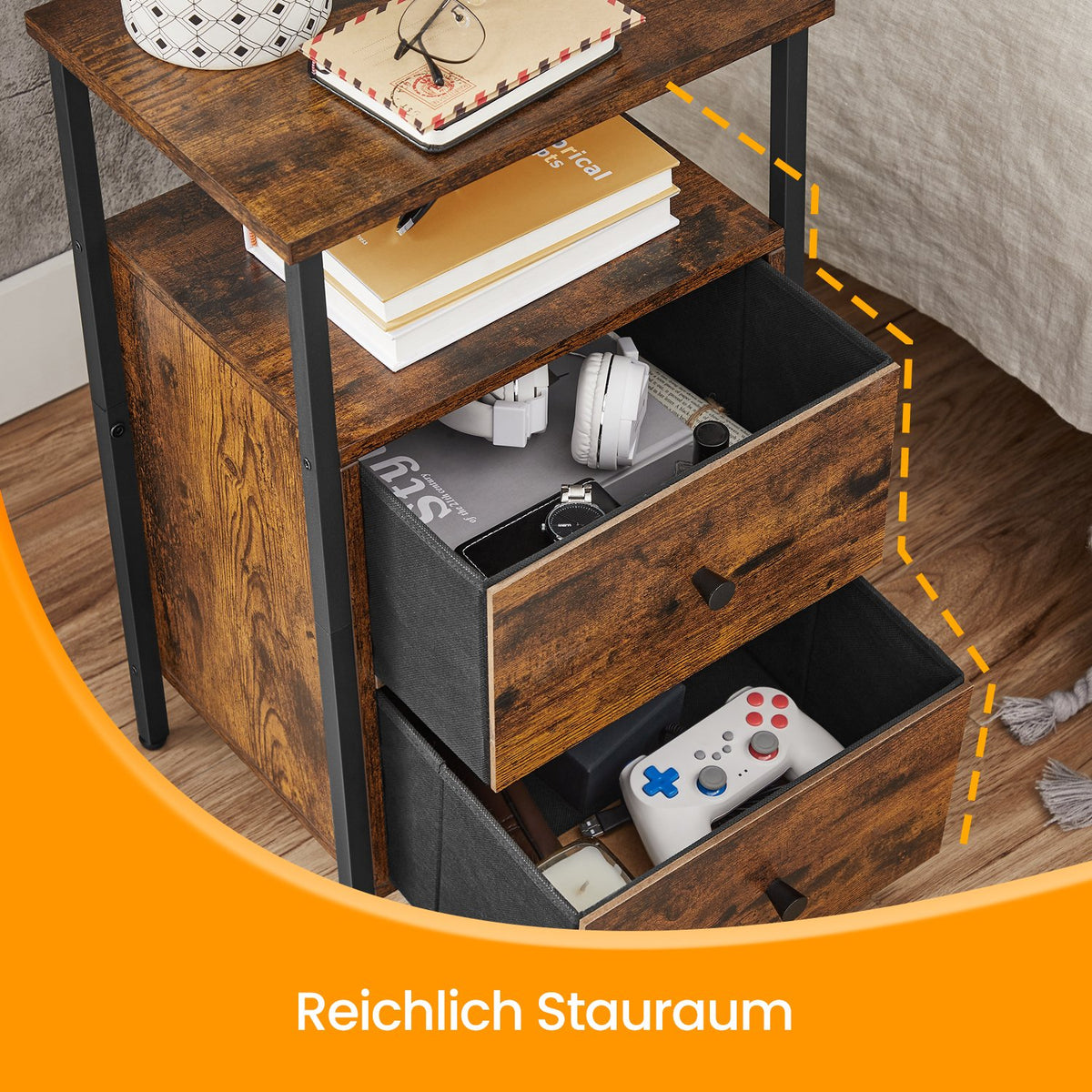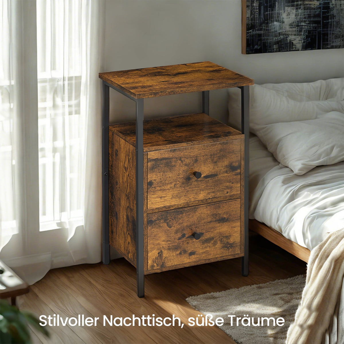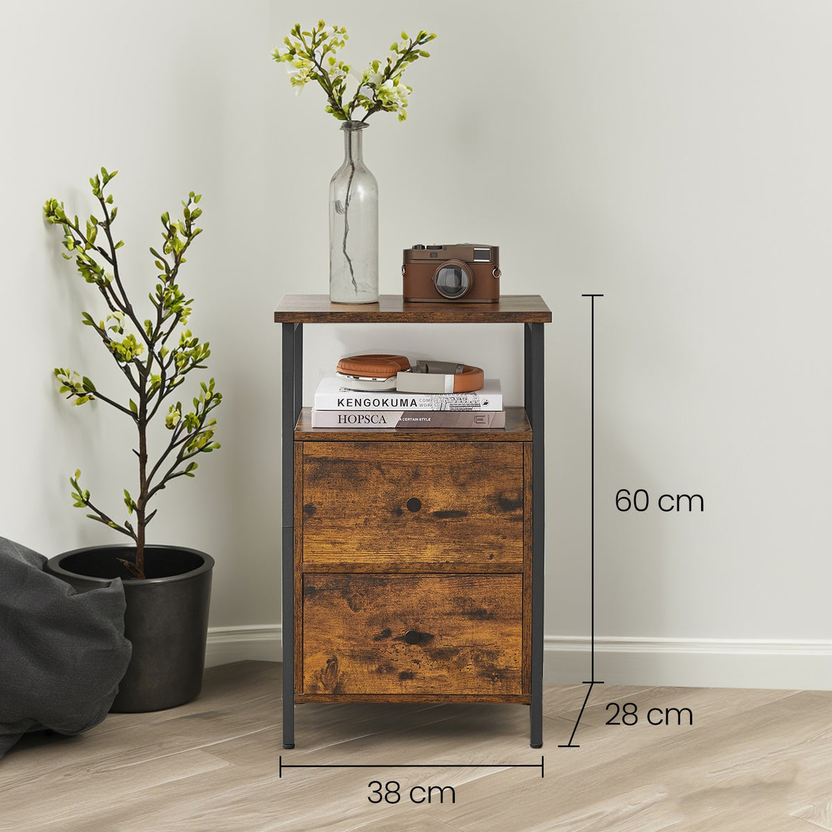 Nachtkastje, bijzettafel, met 2 lades 38 x 28 x 60 cm