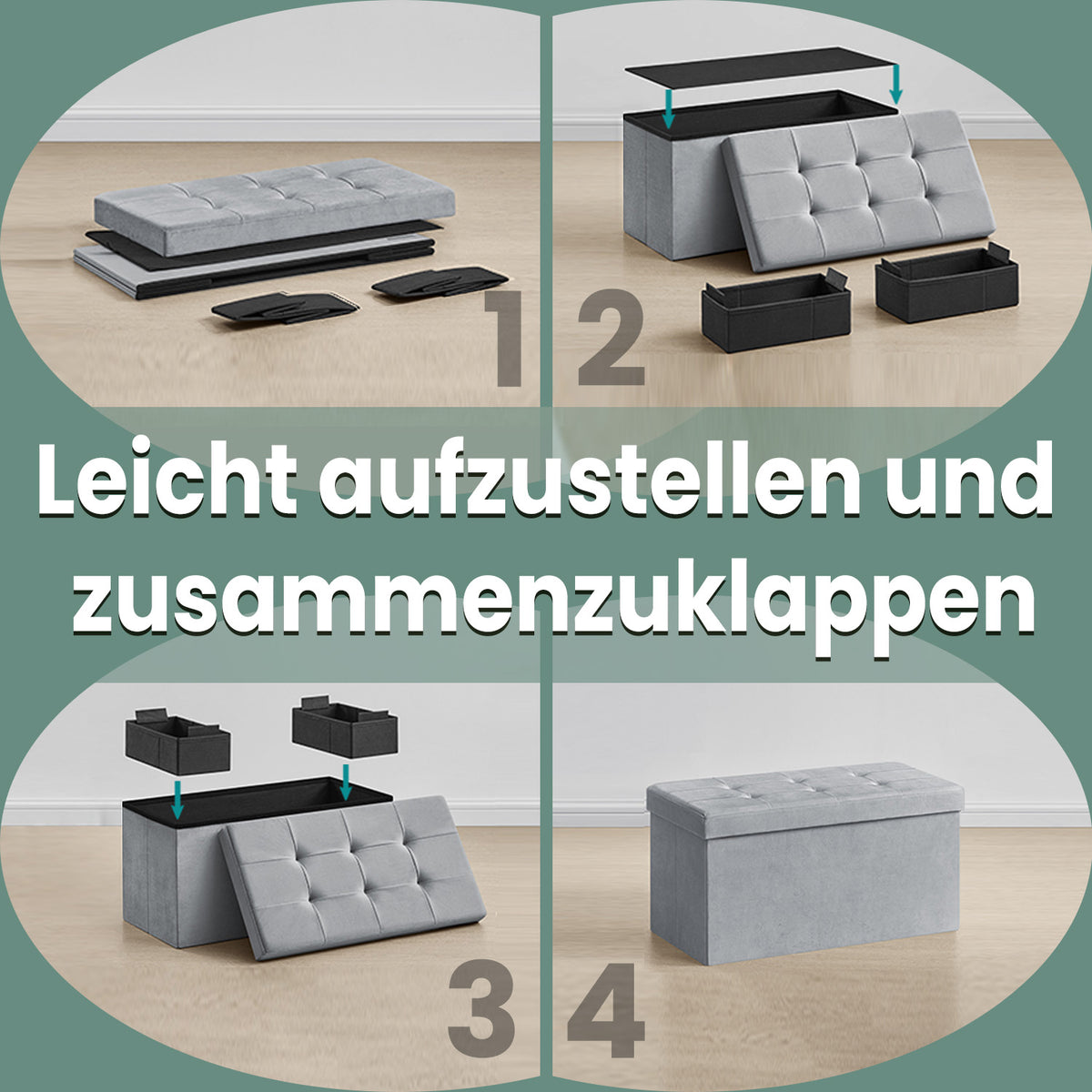 Opbergbank van fluweel, 38 x 76 x 38 cm, opvouwbare opbergkist - LSFB35247G02