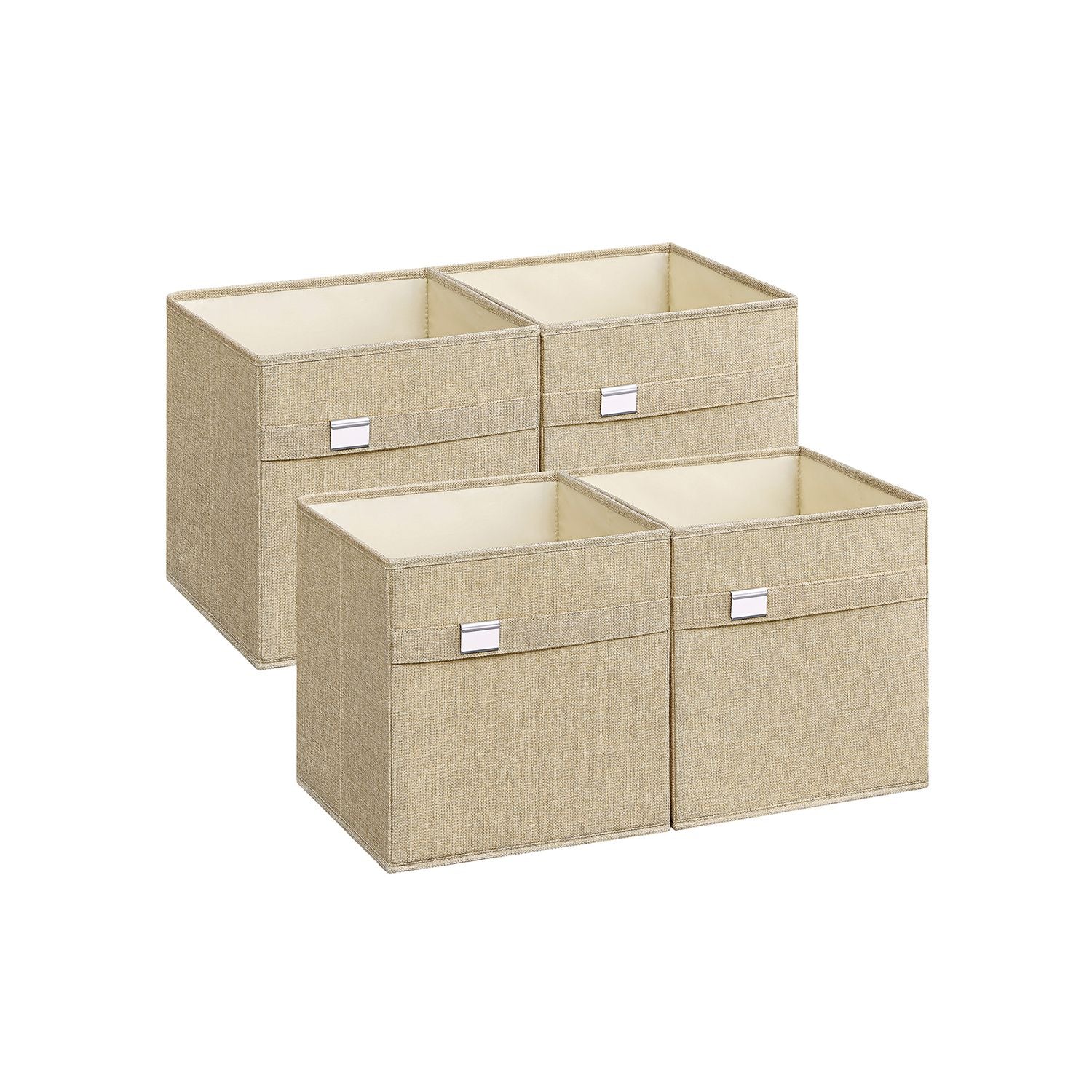 Opbergboxset van 4 van Oxford-stof en imitatielinnen, zandbeige 33 x 33 x 33 cm