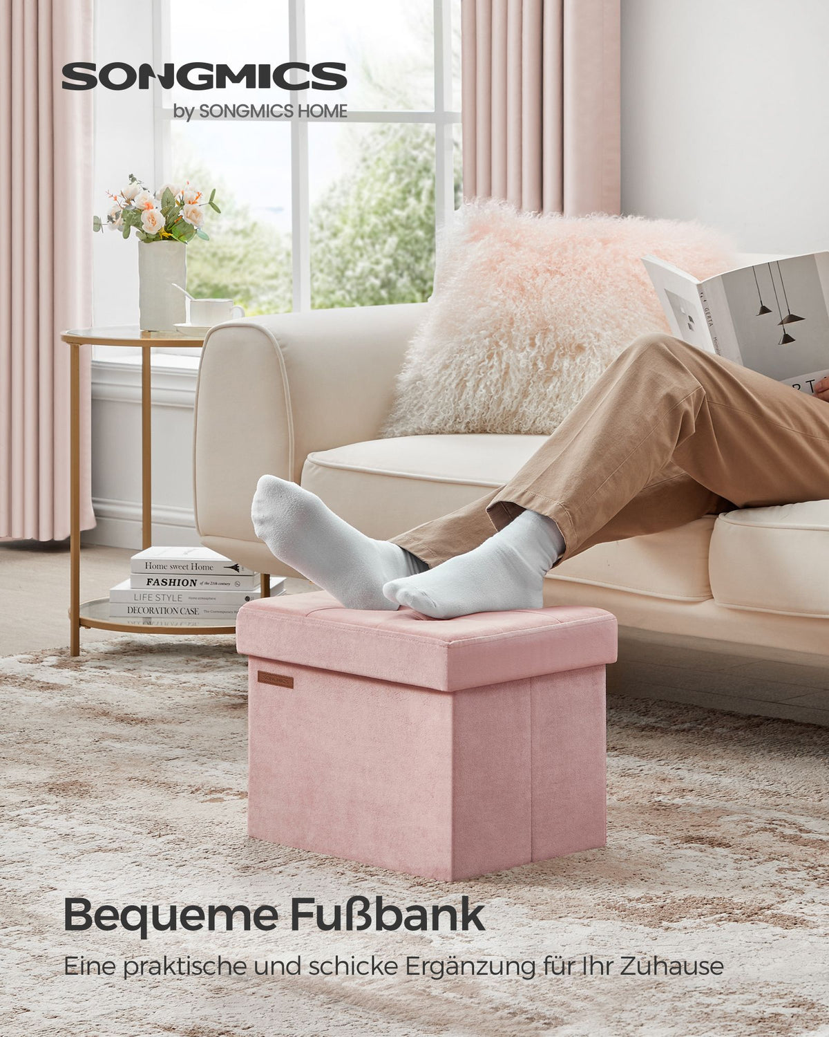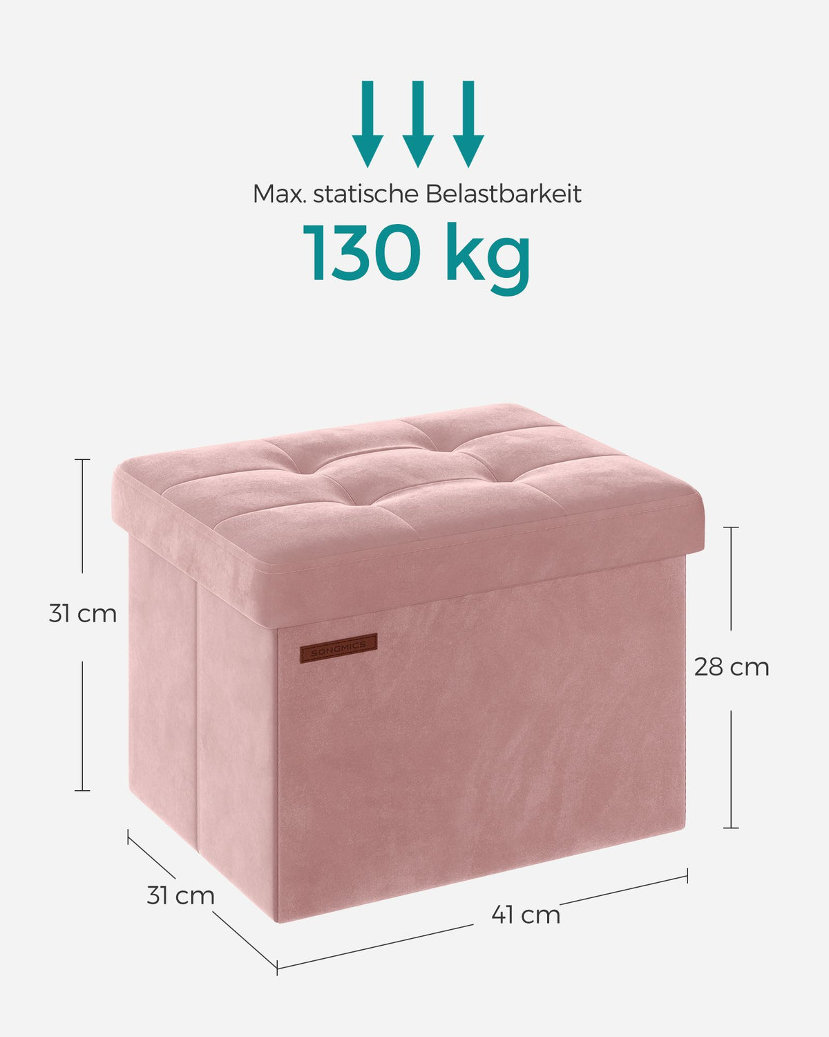 Opbergdoos met deksel, draagvermogen tot 130 kg, pastelroze 31 x 41 x 31 cm