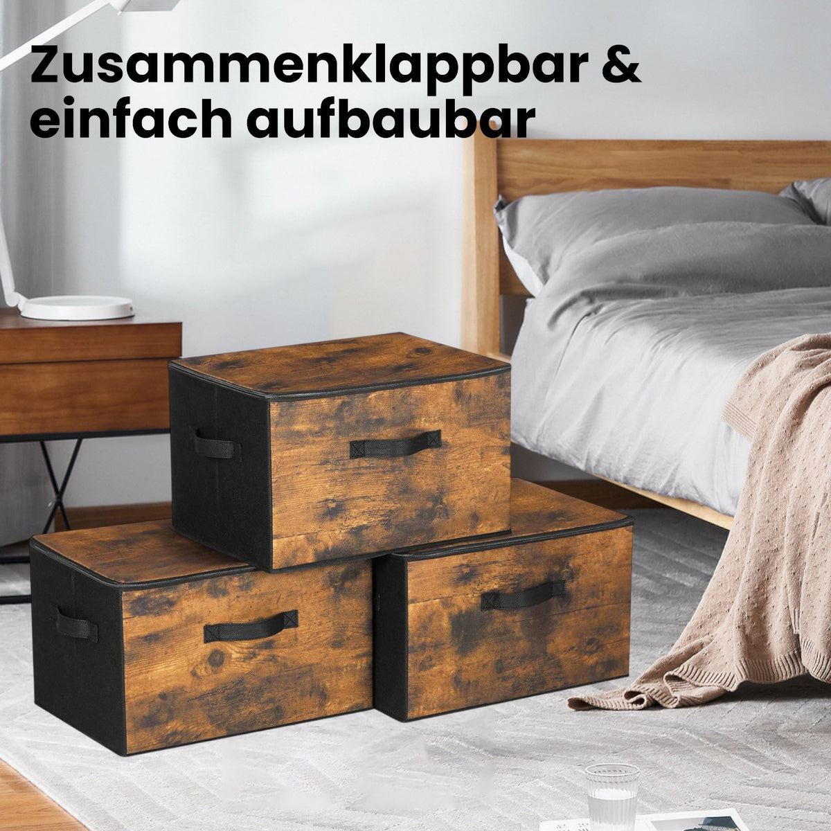 Opbergdoos met deksel, set van 3, opvouwbare stoffen doos met handgrepen 40 x 30 x 25 cm