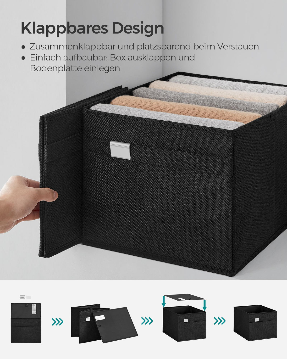 Opbergdoos set van 4 met handgrepen in inktzwart 40 x 30 x 25 cm