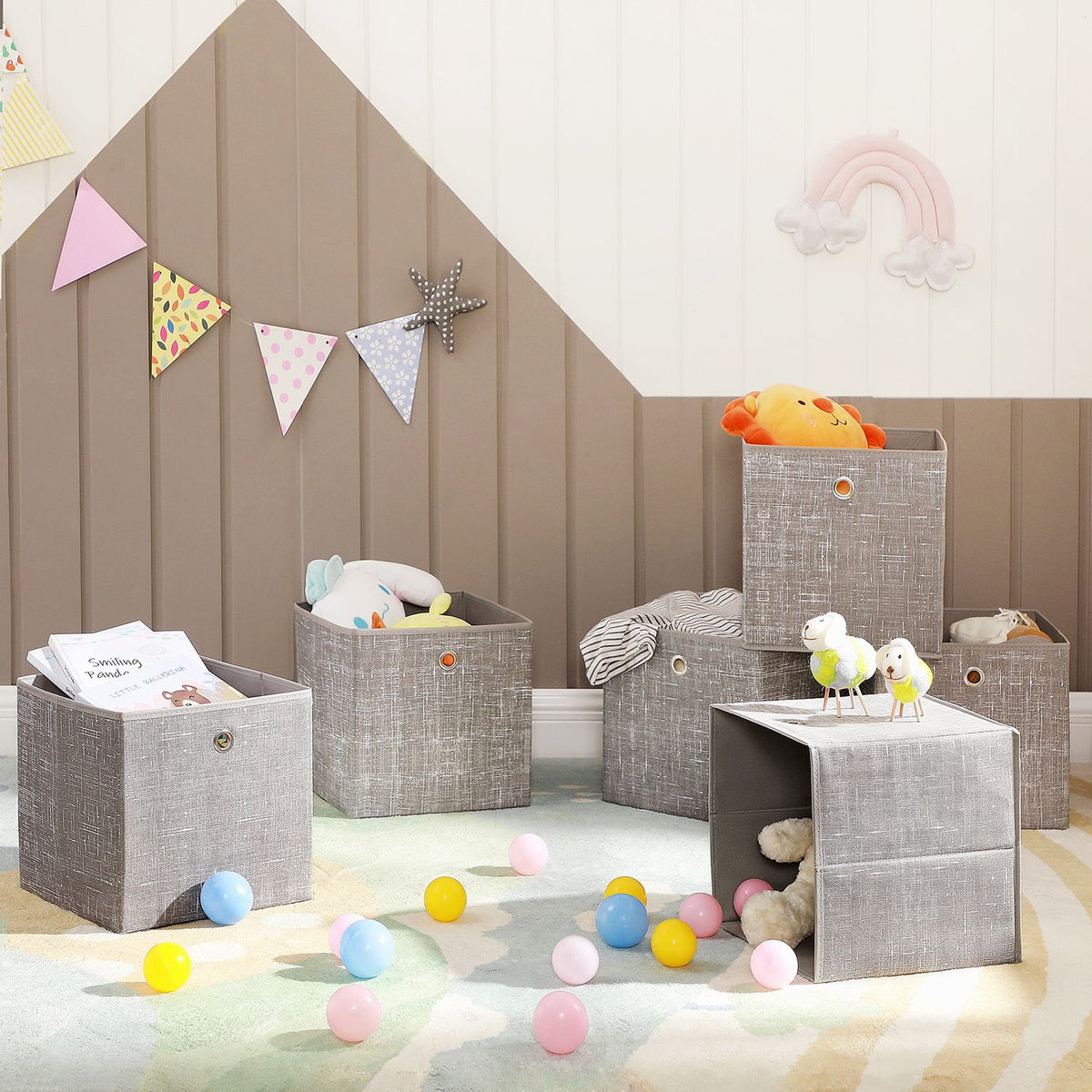 Opbergdoos set van 6, gevlekt taupe 30 x 30 x 30 cm