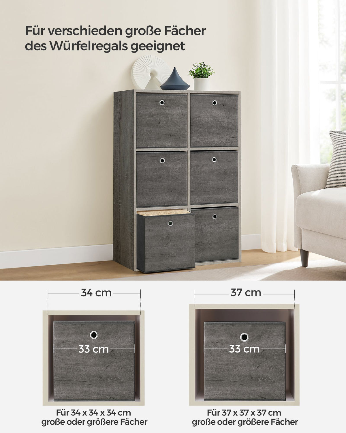 Opbergdoos set van 6, mistgrijs 33 x 33 x 33 cm