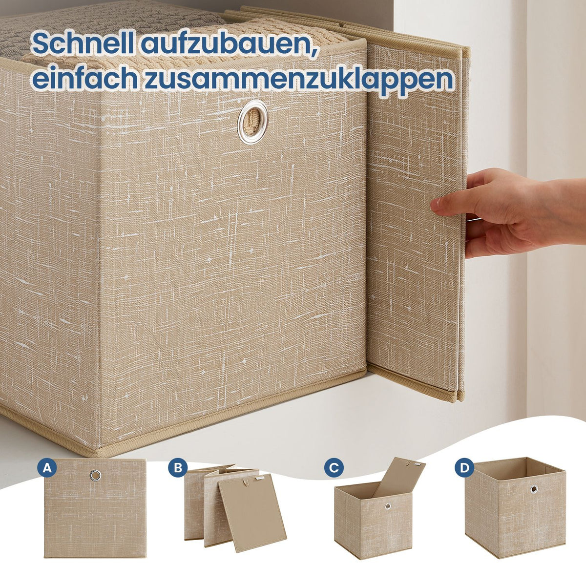 Opbergdoos, set van 6, non-woven opbergdozen met handvat 30 x 30 x 30 cm