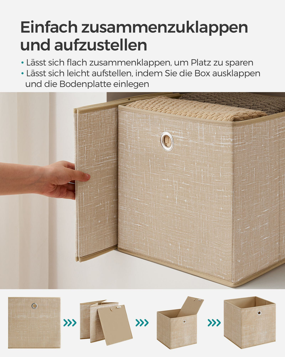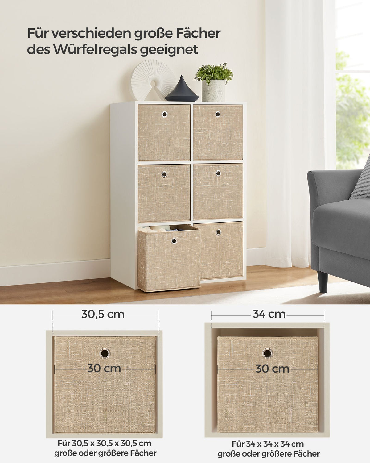 Opbergdoos set van 6 zandbeige 30 x 30 x 30 cm