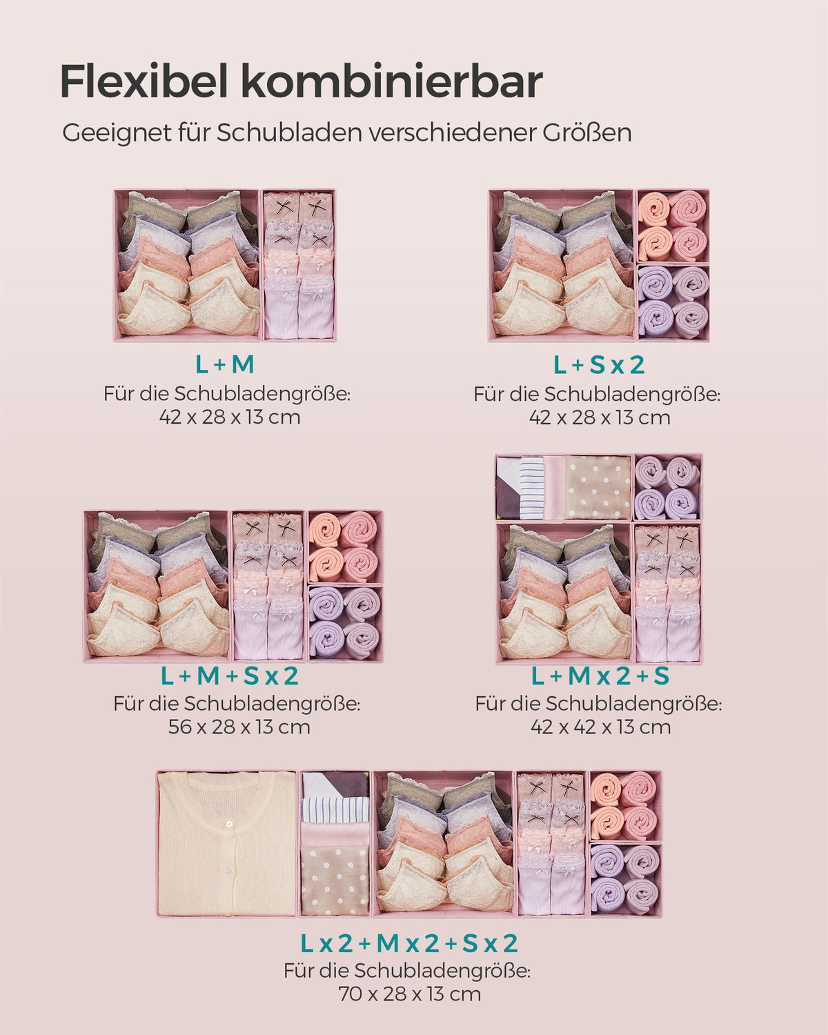 Opbergdoos voor lade, set van 12, pastelroze 28 x 28 x 13 cm