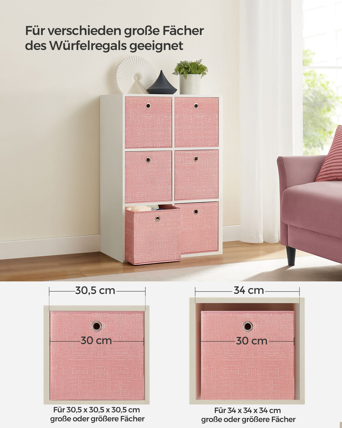 Opbergdoosset van 6 pastelroze 30 x 30 x 30 cm