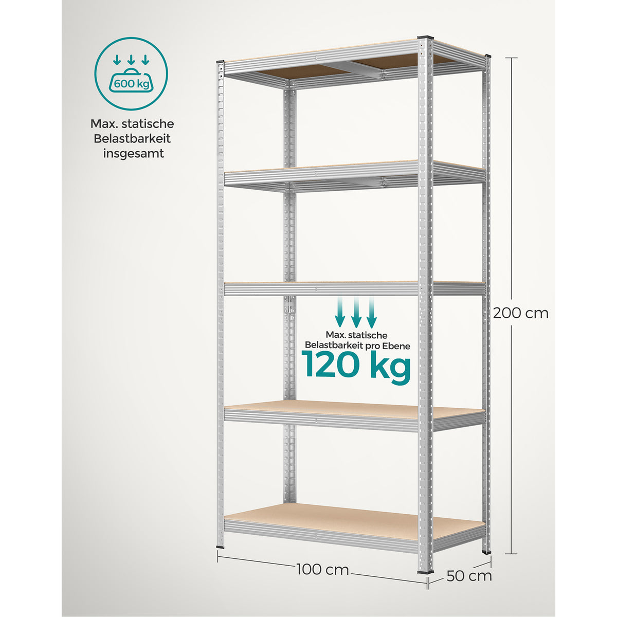 Opbergplanken set van 2, 200 x 100 x 50 cm zilver