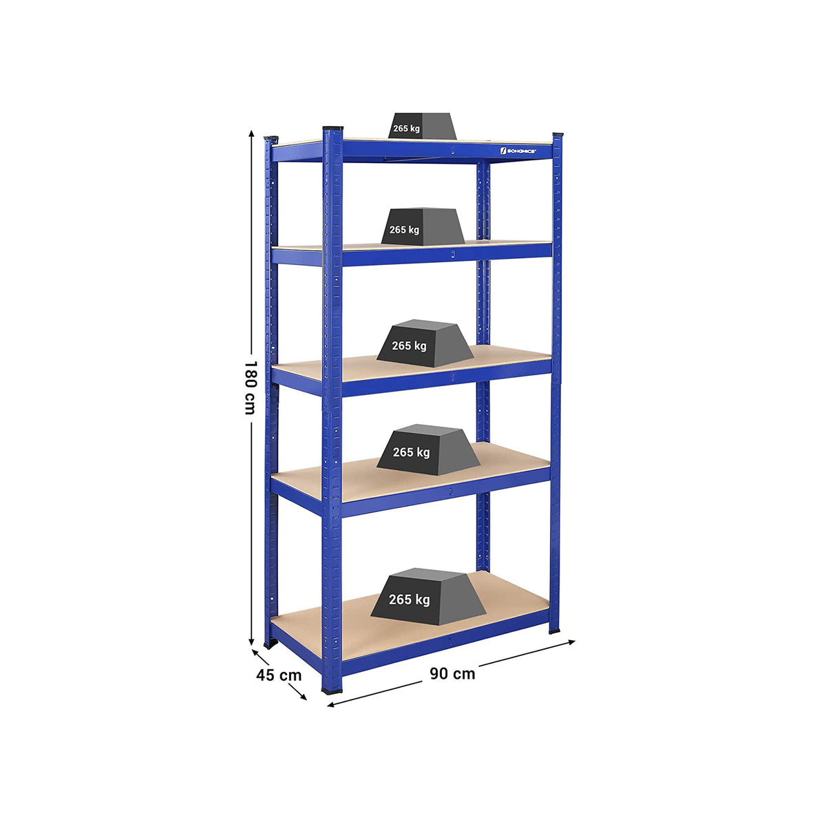 Opbergplankenset van 2 met 5 verstelbare planken blauw 180 x 90 x 45 cm