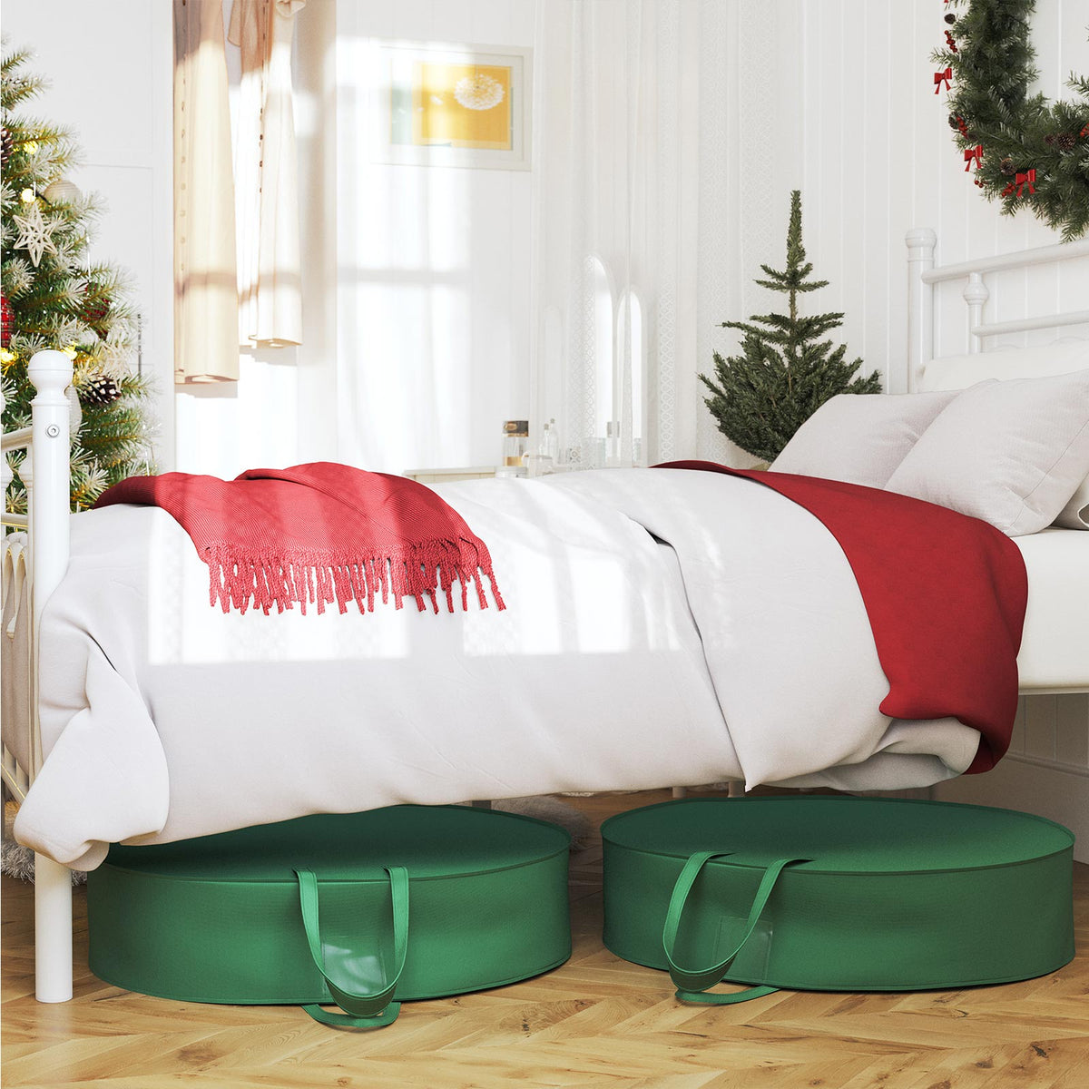 Opbergzakken set van 2 met handvatten groen 100 cm