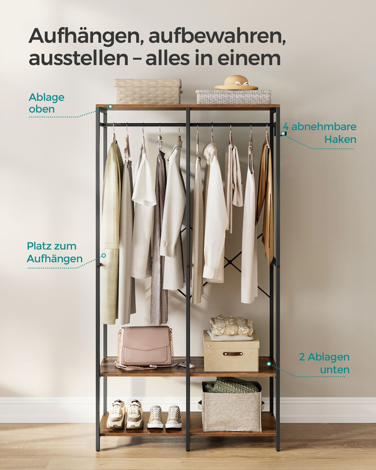 Open kledingkast met kledingroede vintage bruin 5 x 180 cm - RGR004B01