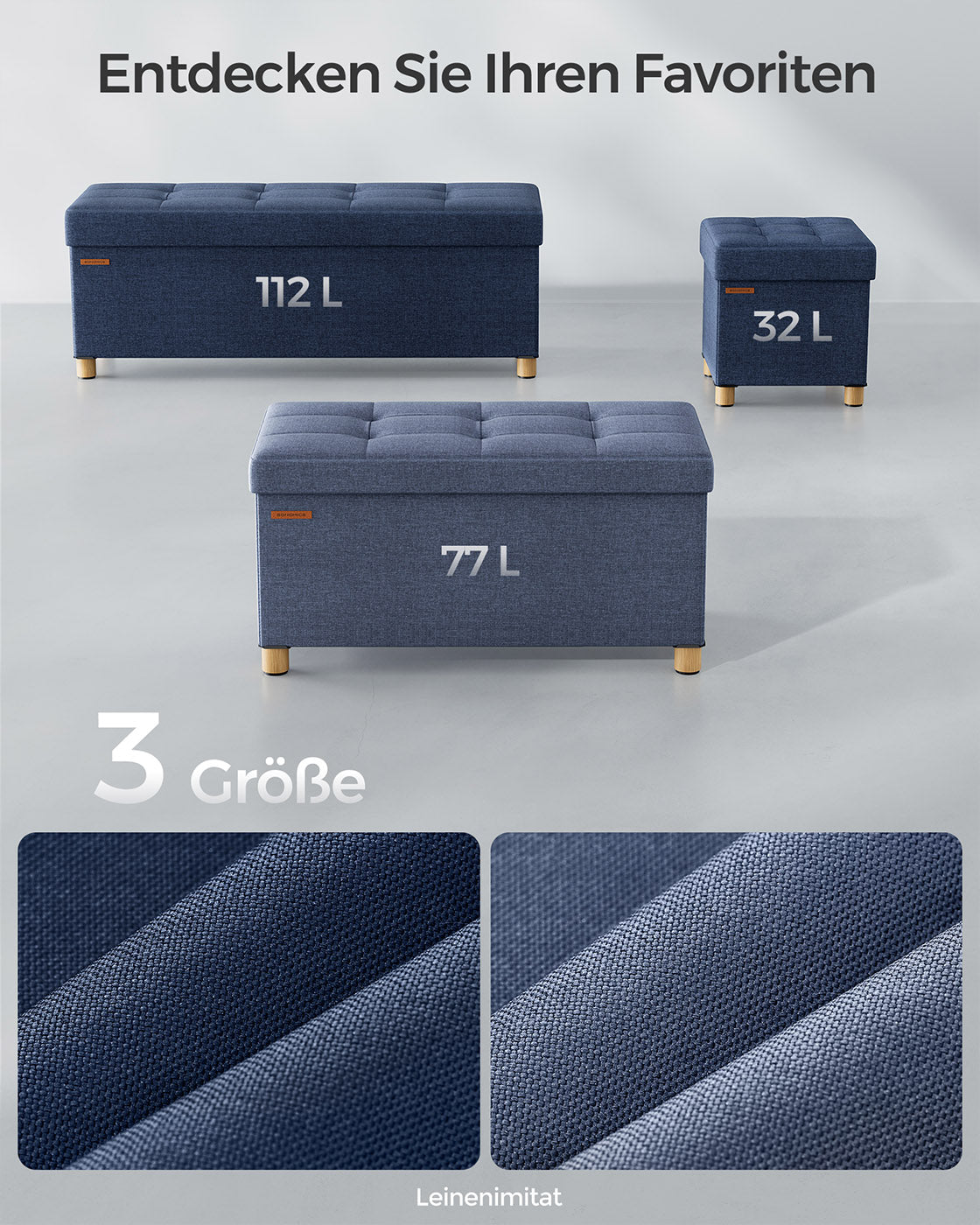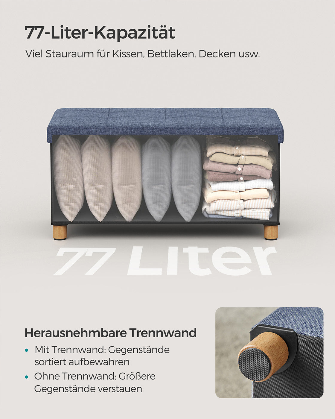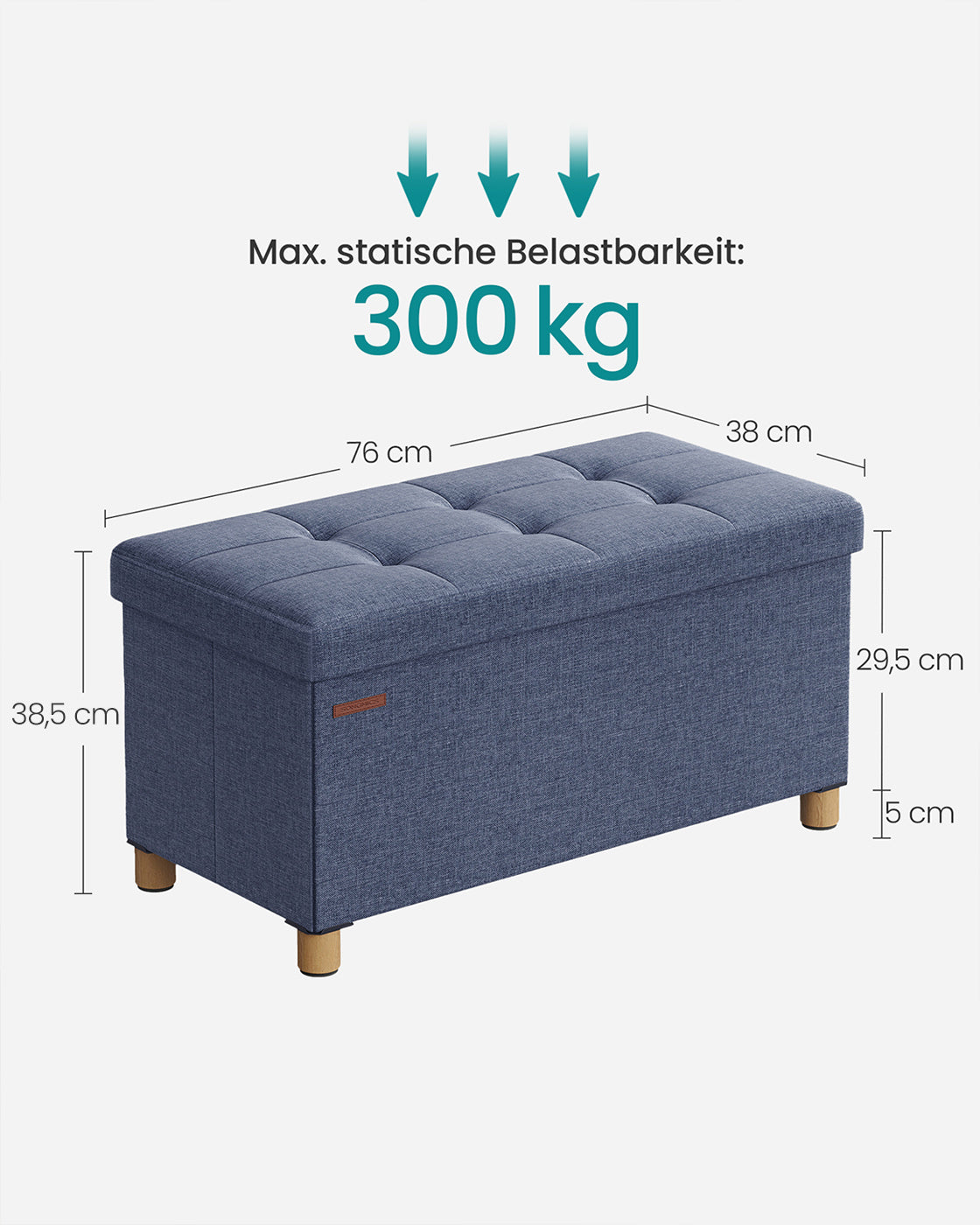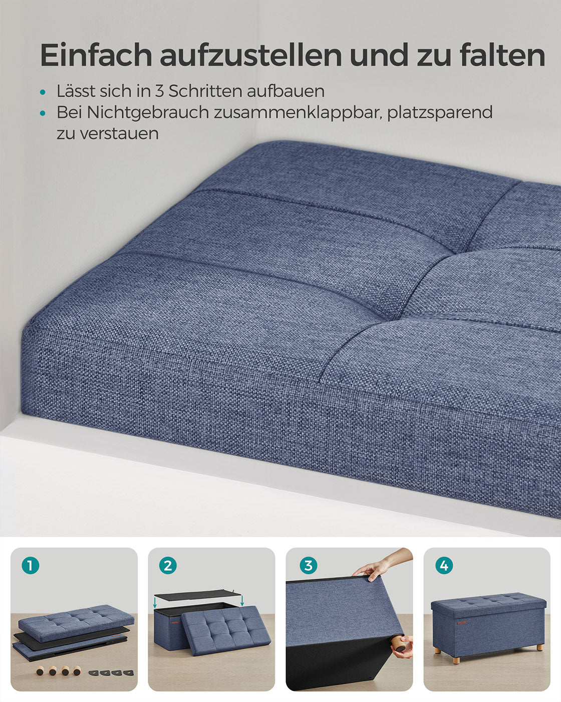 Opvouwbare bank 38 x 76 x 40 cm met opbergruimte licht denimblauw
