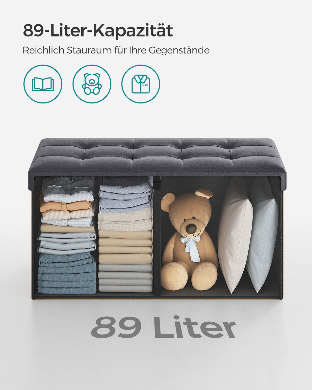 Opvouwbare bank 89 liter 38 x 76 x 38 cm donkergrijs