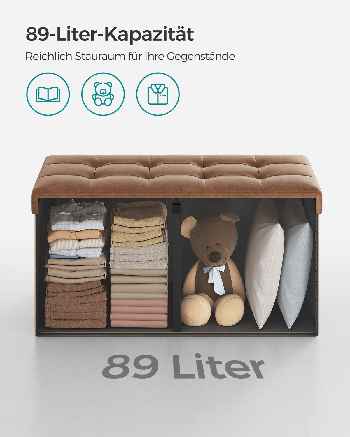 Opvouwbare bank 89 liter 38 x 76 x 38 cm koffiebruin