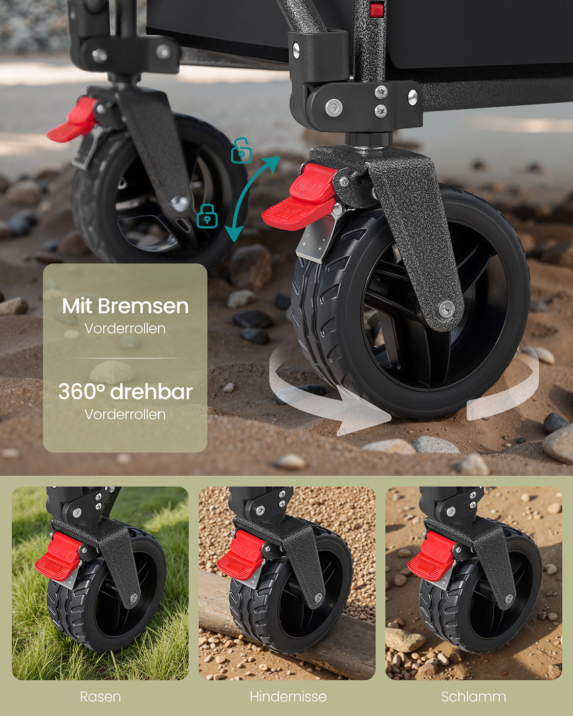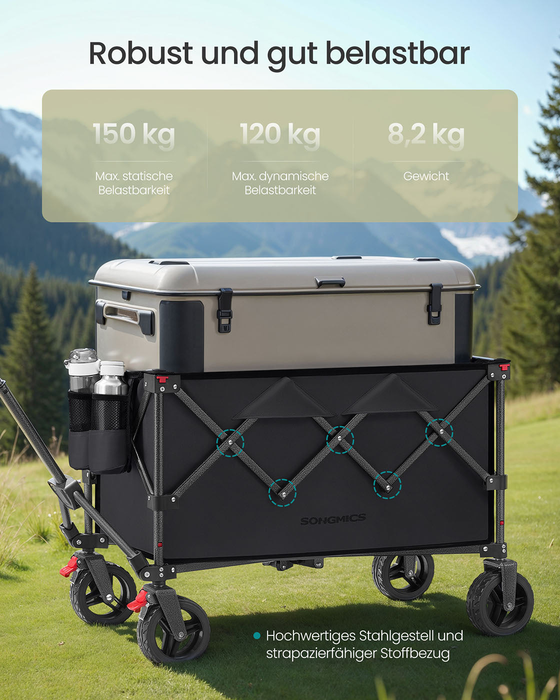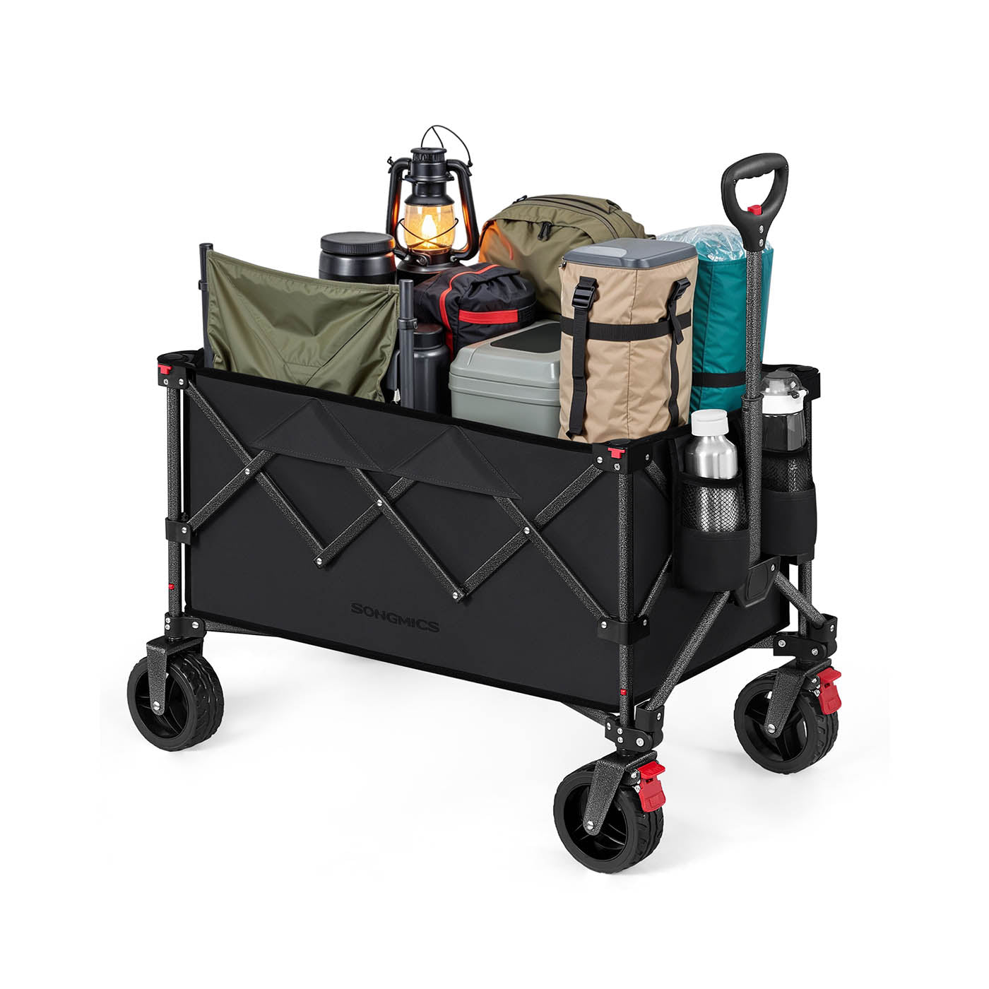 Opvouwbare handkar met handvat en 4 afneembare wielen inktzwart 5 cm