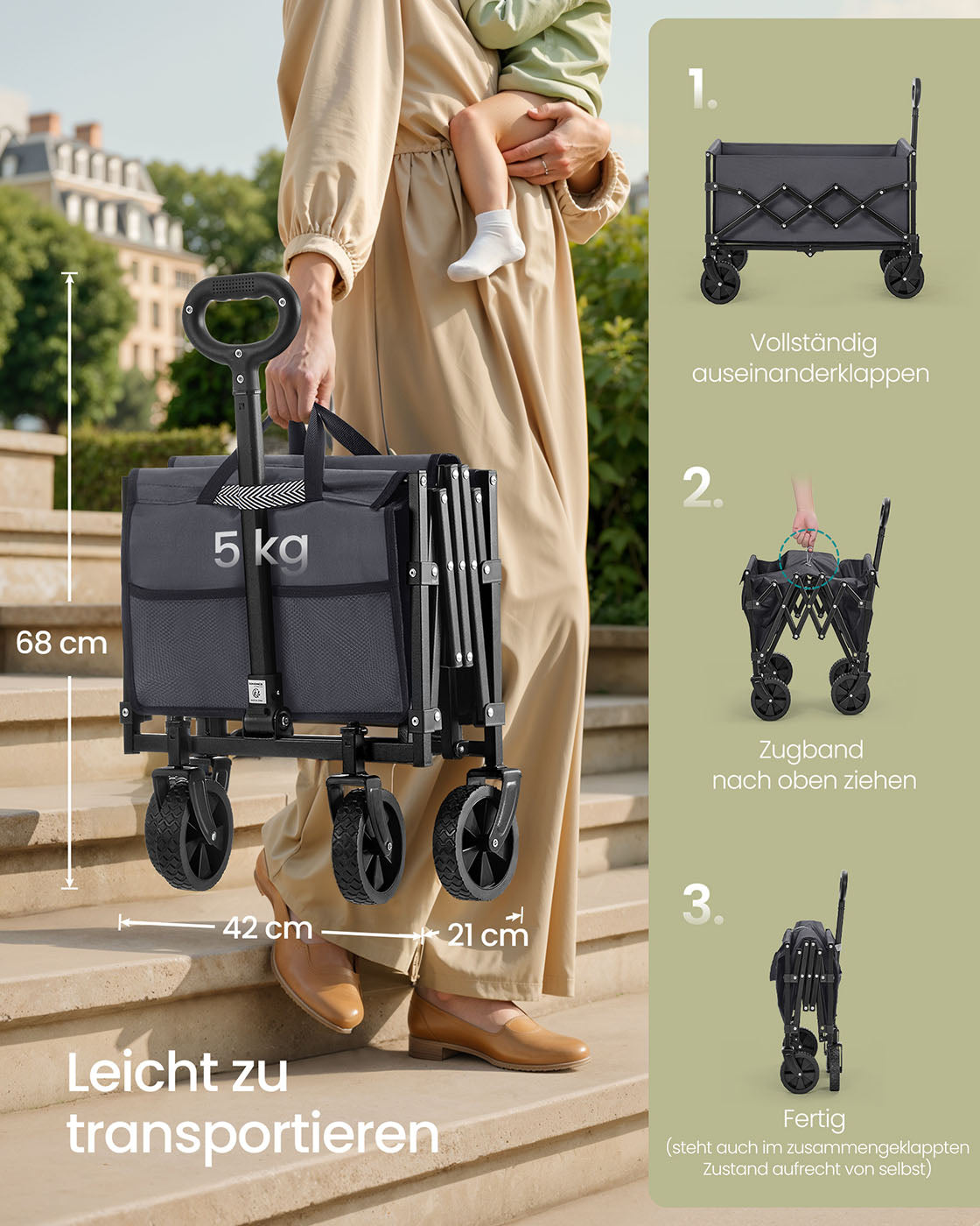 Opvouwbare handkar tot 150 kg leigrijs 5 cm