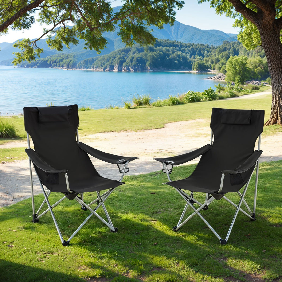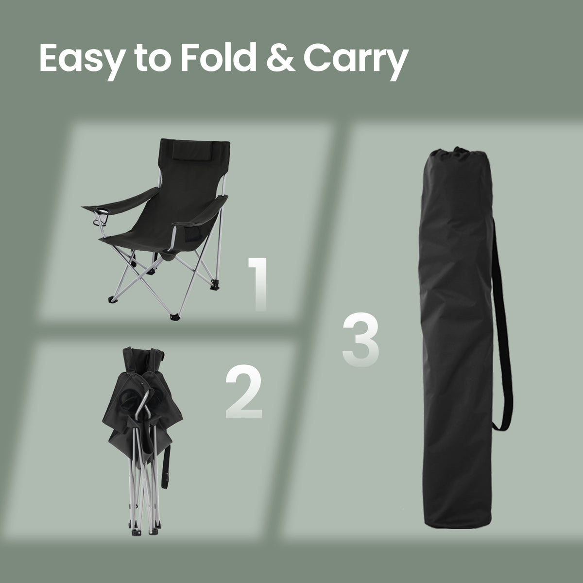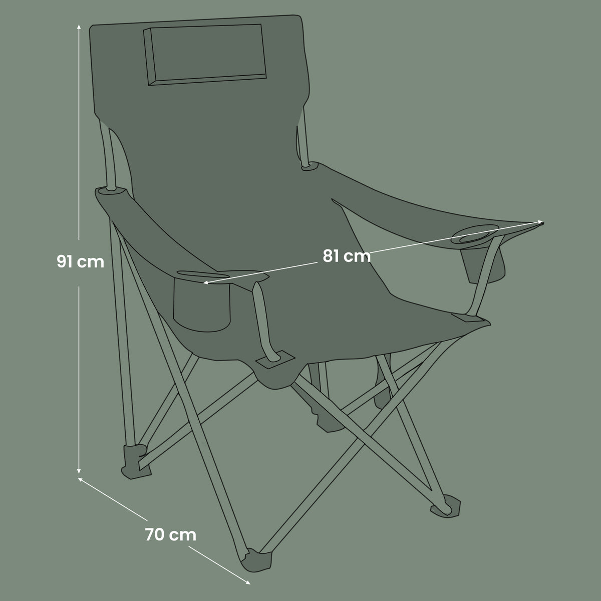 Opvouwbare kampeerstoel met armleuningen, hoofdsteun en bekerhouders 81 x 70 x 91 cm - GCBB3509BK
