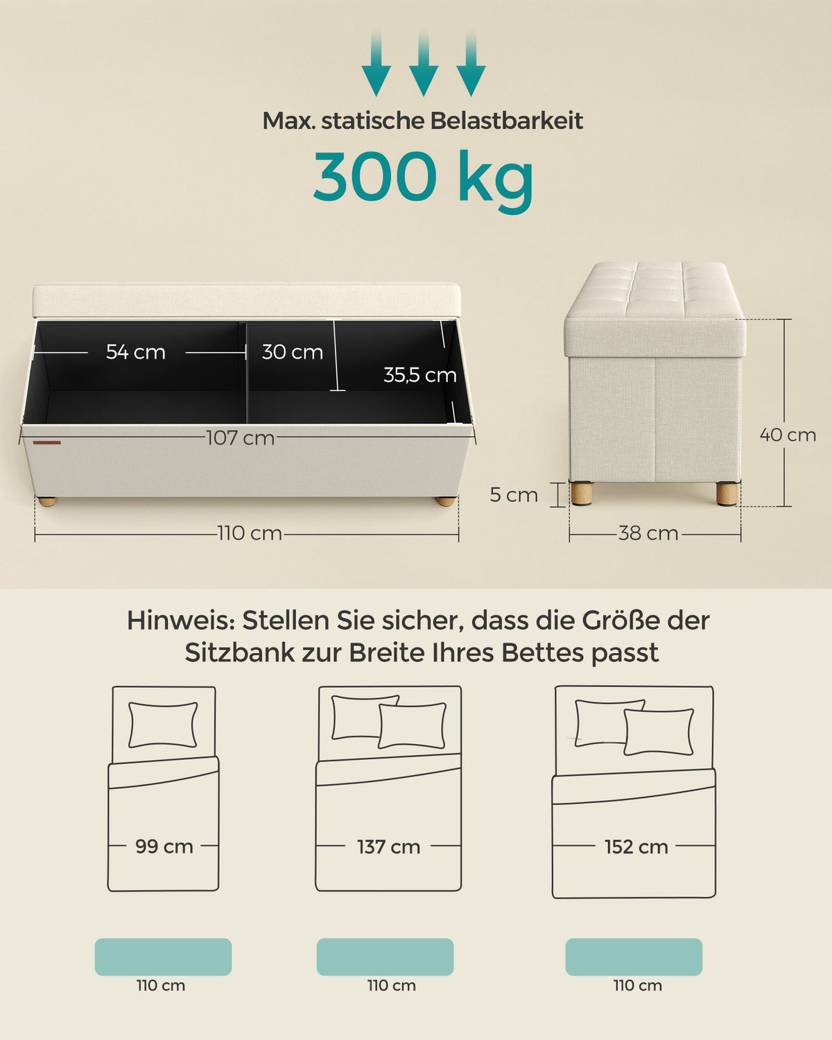 Opvouwbare kruk met opbergruimte 38 x 110 x 40 cm crèmewit