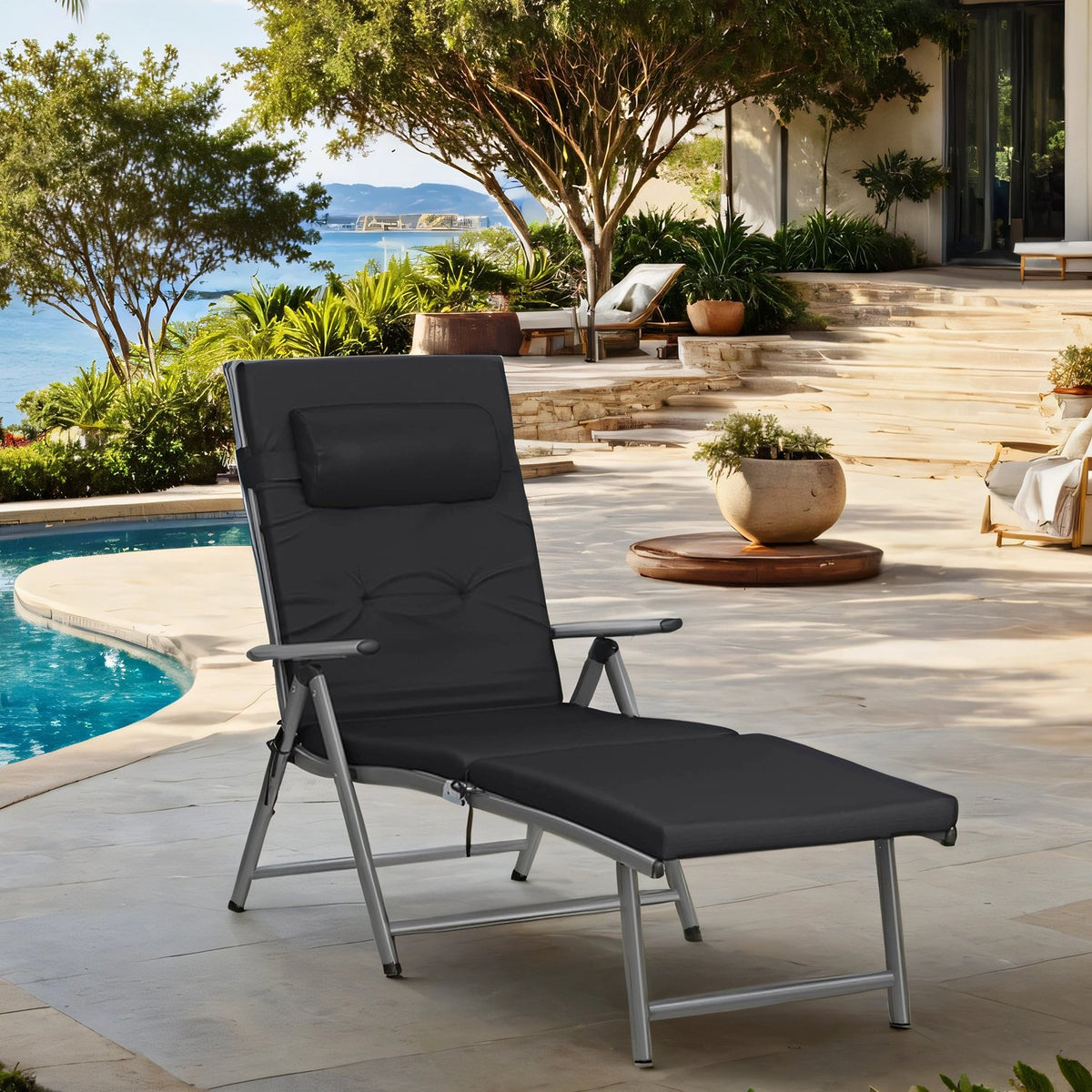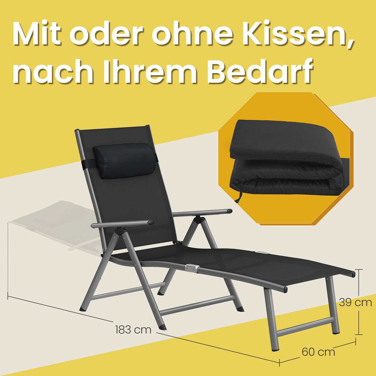 Opvouwbare ligstoel met 6 cm dikke matras, tuinstoel, afneembaar kussen