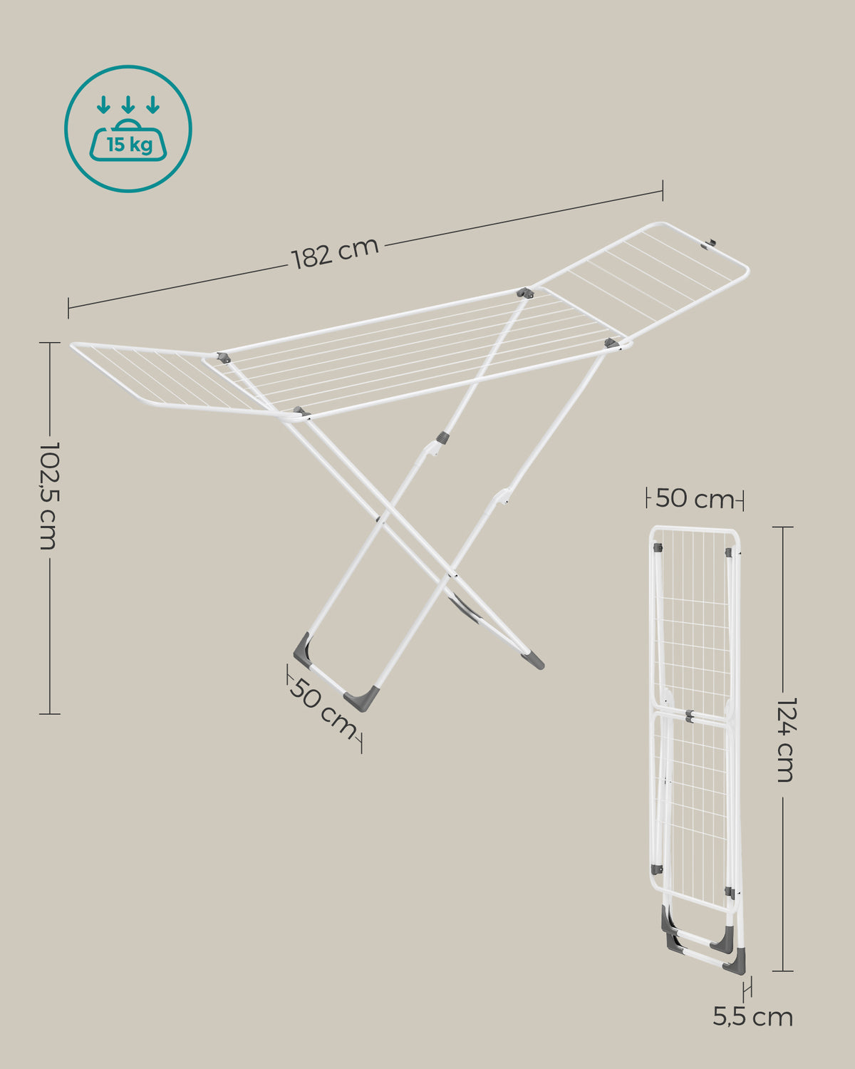 Opvouwbare staande droger voor binnen- en buitengebruik 5 cm