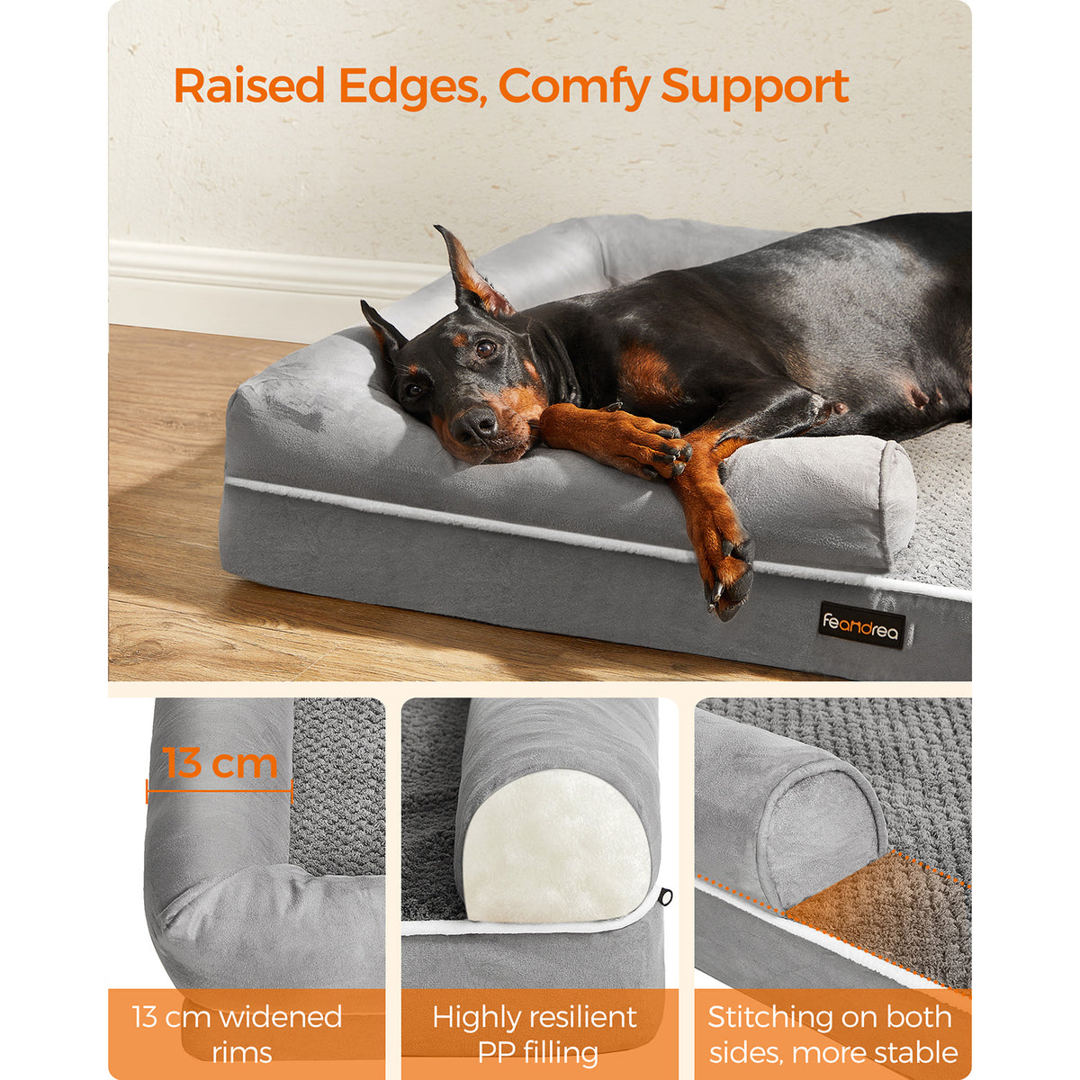 Orthopedisch hondenbed lichtgrijs 91 x 71 x 25 cm