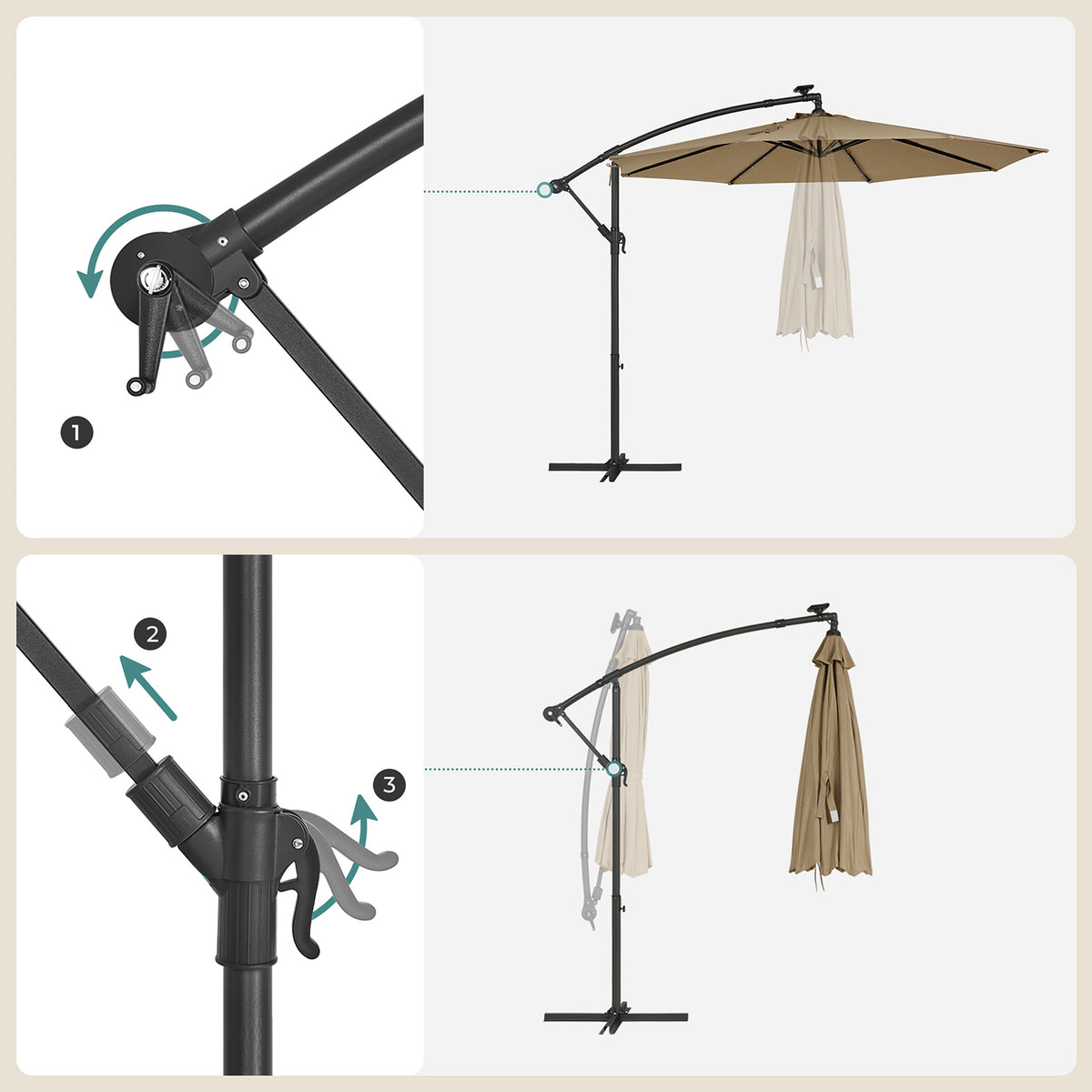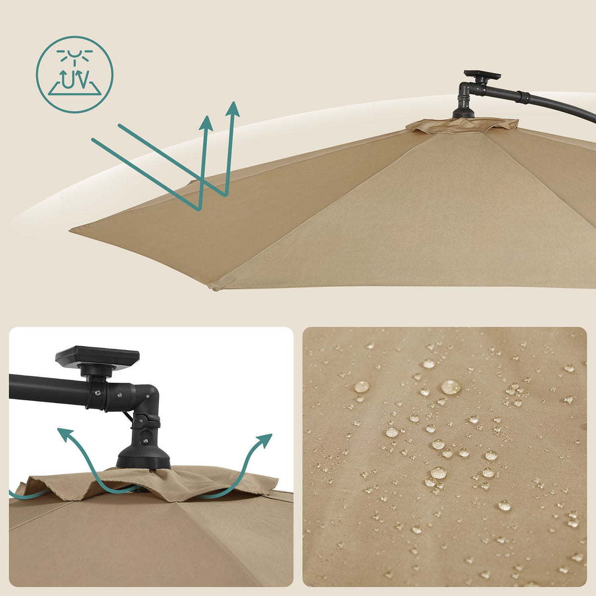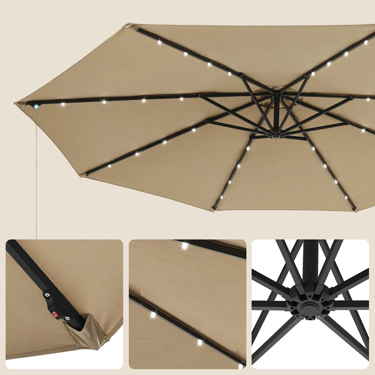 Parasol met LED-zonneverlichting en standaard