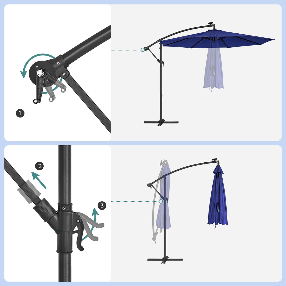 Parasol met LED-zonneverlichting met standaard