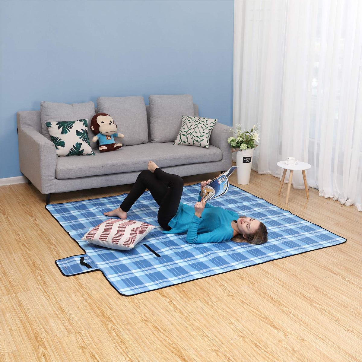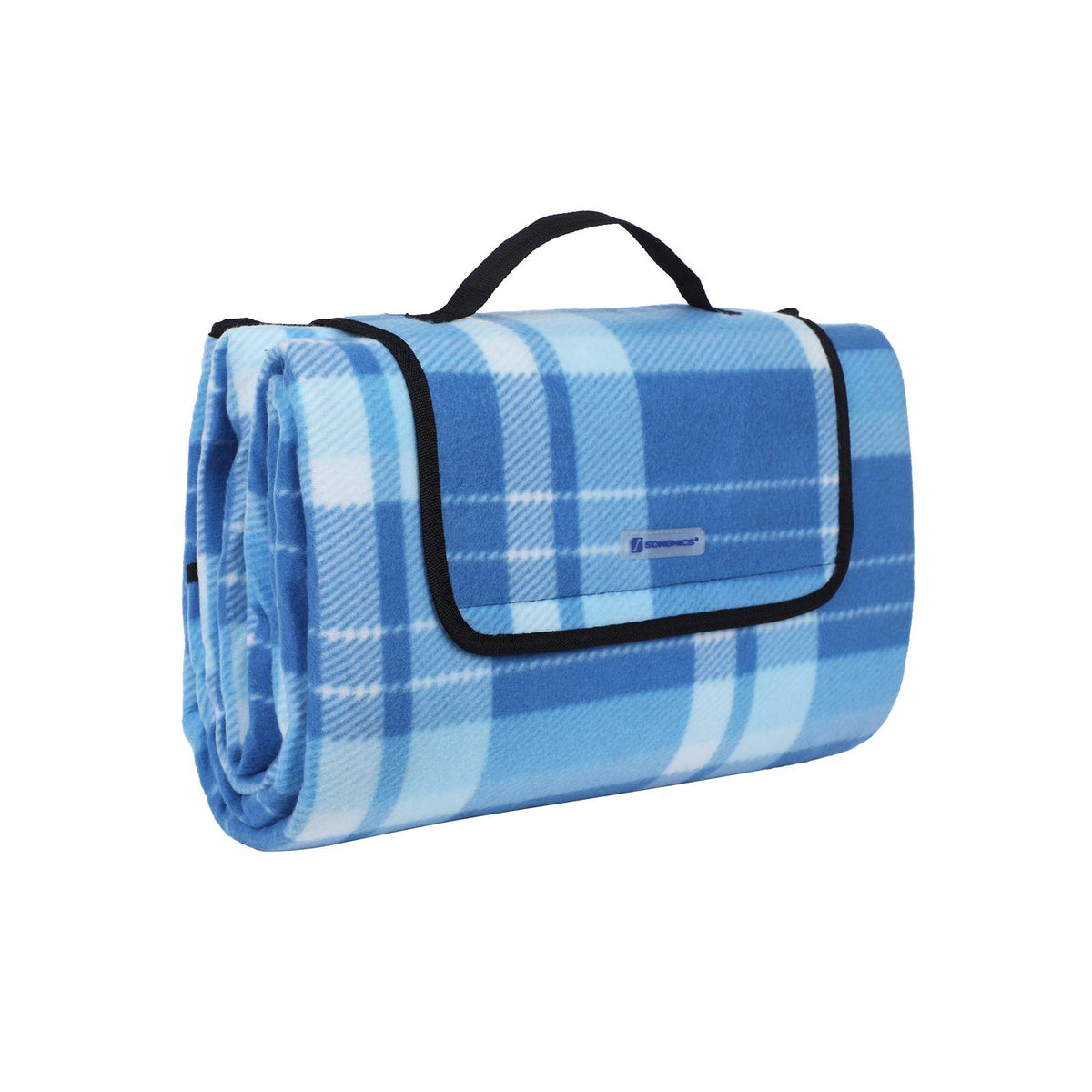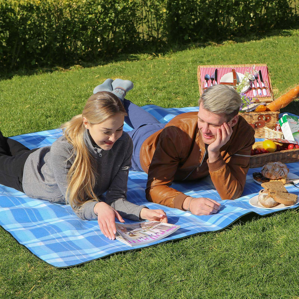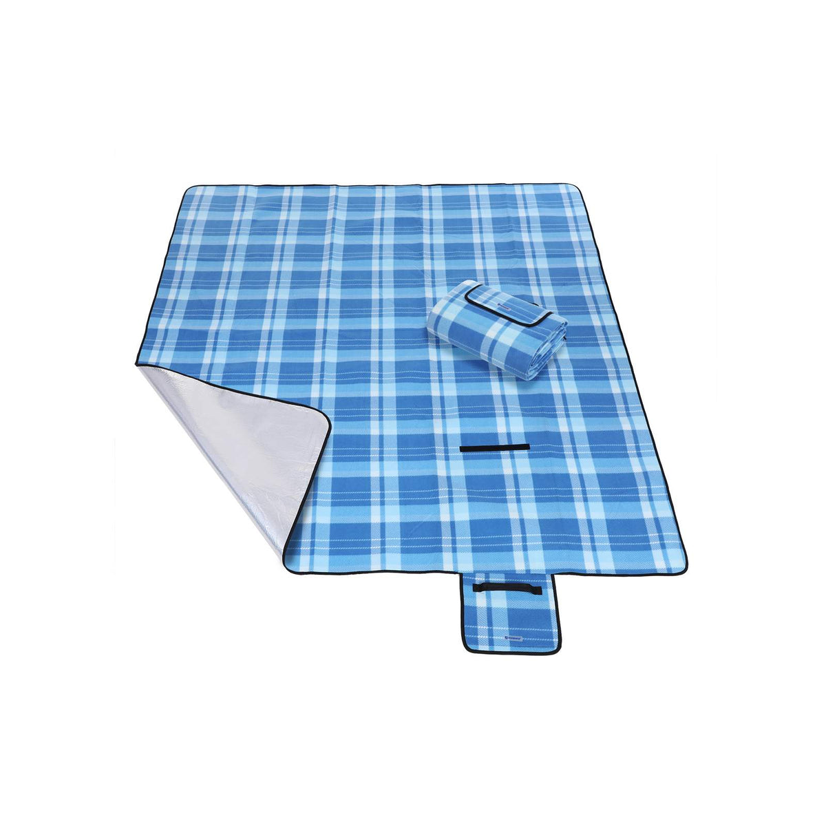 Picknickdeken flanel blauw-wit XXL 200 x 200 cm